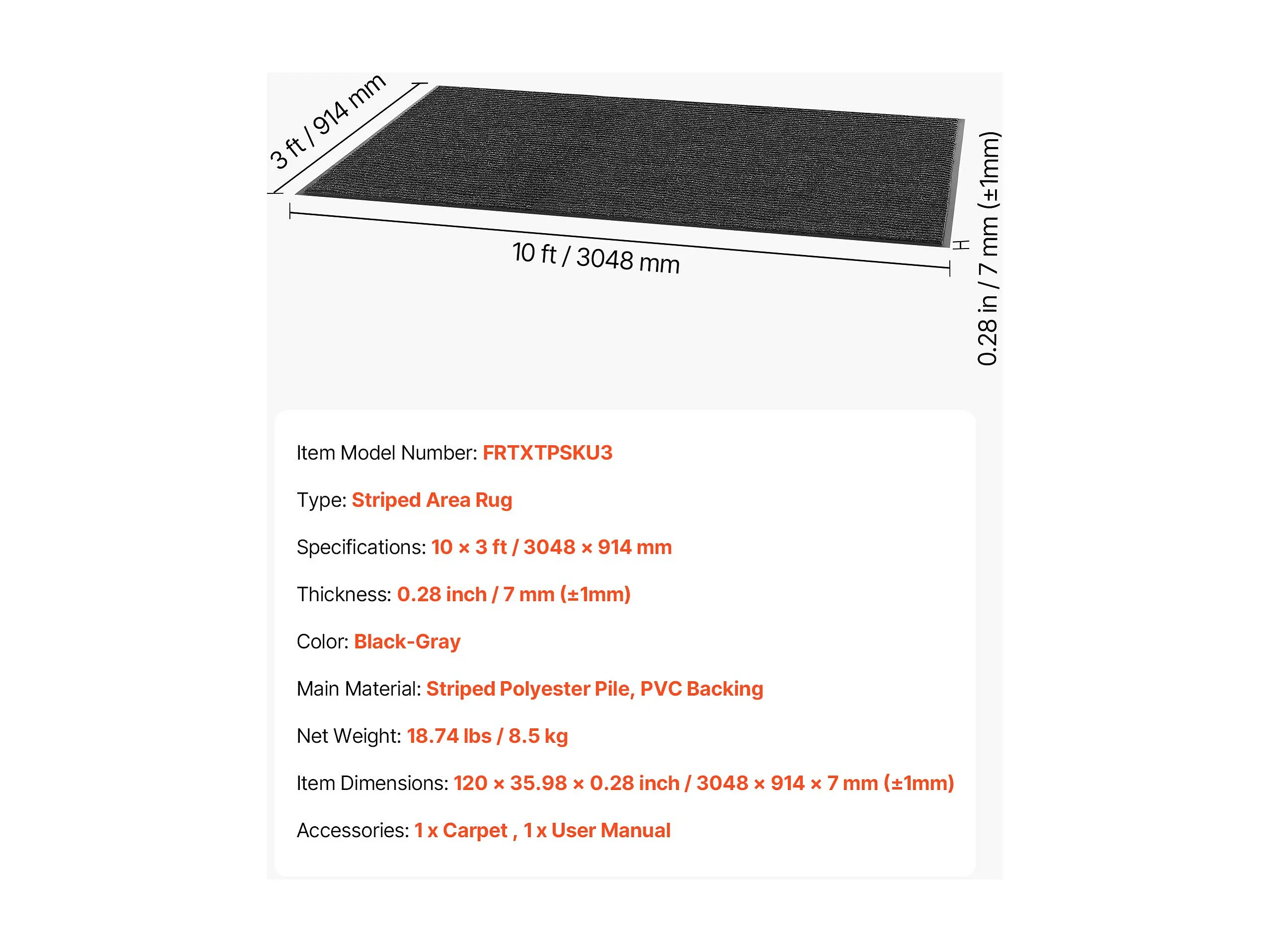 Mata Wejściowa SucceBuy, 305 x 91,4 cm, Wycieraczka Zewnętrzna Wewnętrzna Elegancka W Paski, z Antypoślizgowym Spodem PVC, Trwała Zmywalna, Łapie Pył, Szary