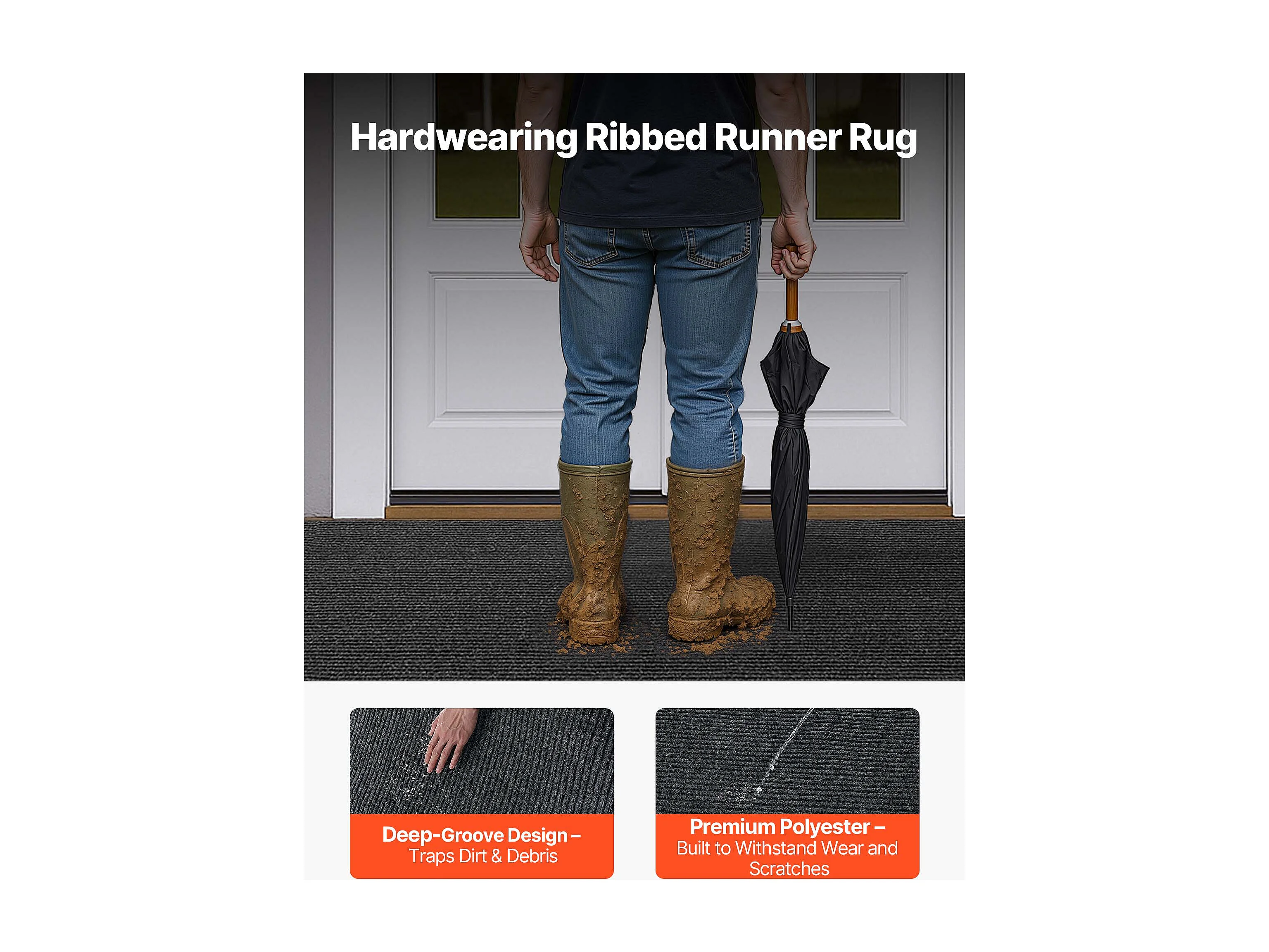Mata Wejściowa SucceBuy, 156x91,4 cm, Wycieraczka Zewnętrzna Wewnętrzna Nowoczesna Elegancka, z Antypoślizgowym Spodem TPE, Trwała Zmywalna, Łapie Pył, Szary