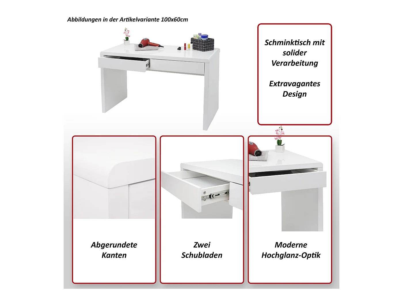 Toaletka z lustrem z szufladami biała makijażu glamour skandynawski 100 cm