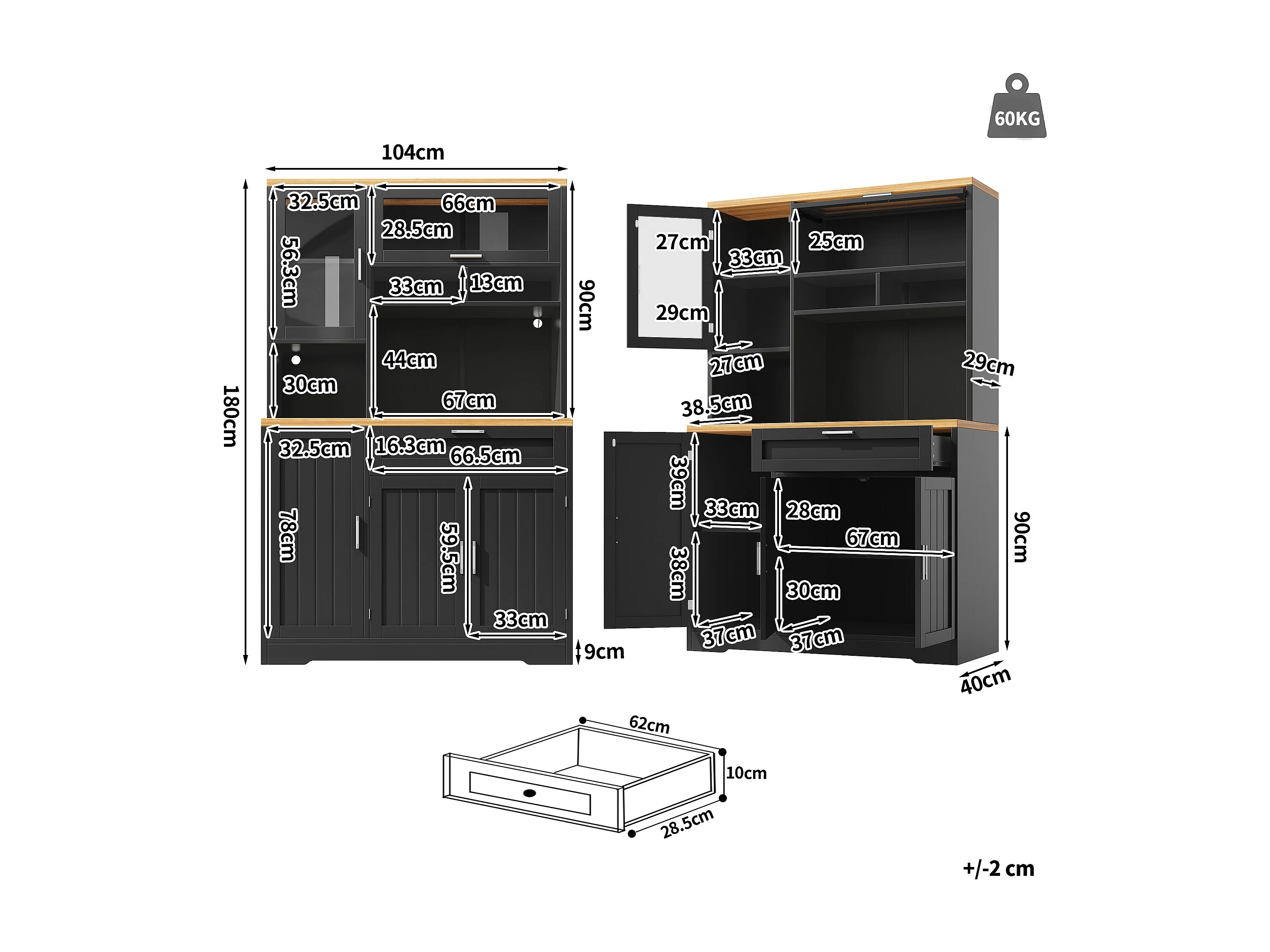 Mebel kuchenny - 104x40x180 cm - z 4 drzwiami i 1 szufladą - z oświetleniem LED - Czarny