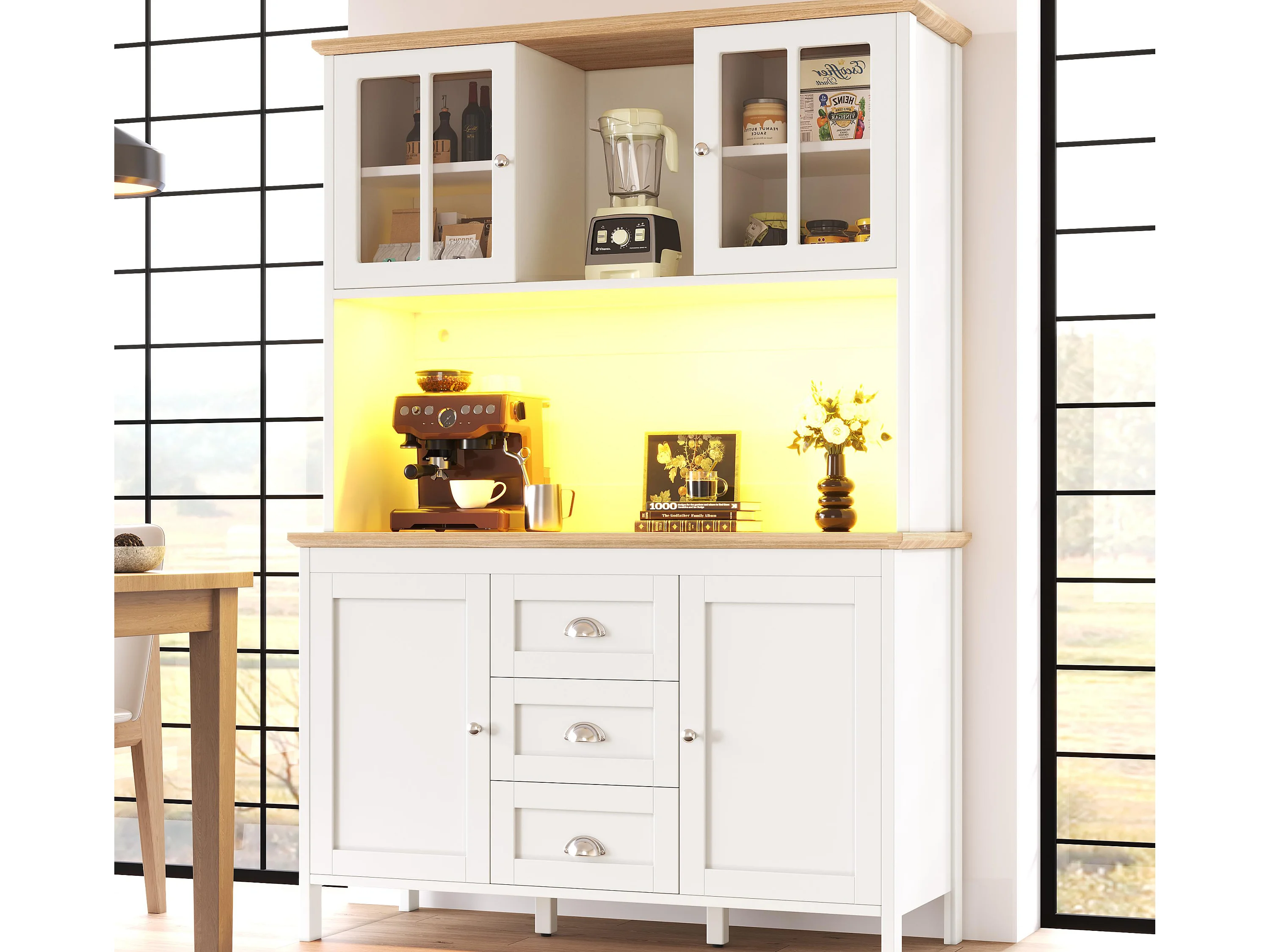 Mebel kuchenny - 120x40x179 cm - 4 drzwi i 3 szuflady - z oświetleniem LED - Biały