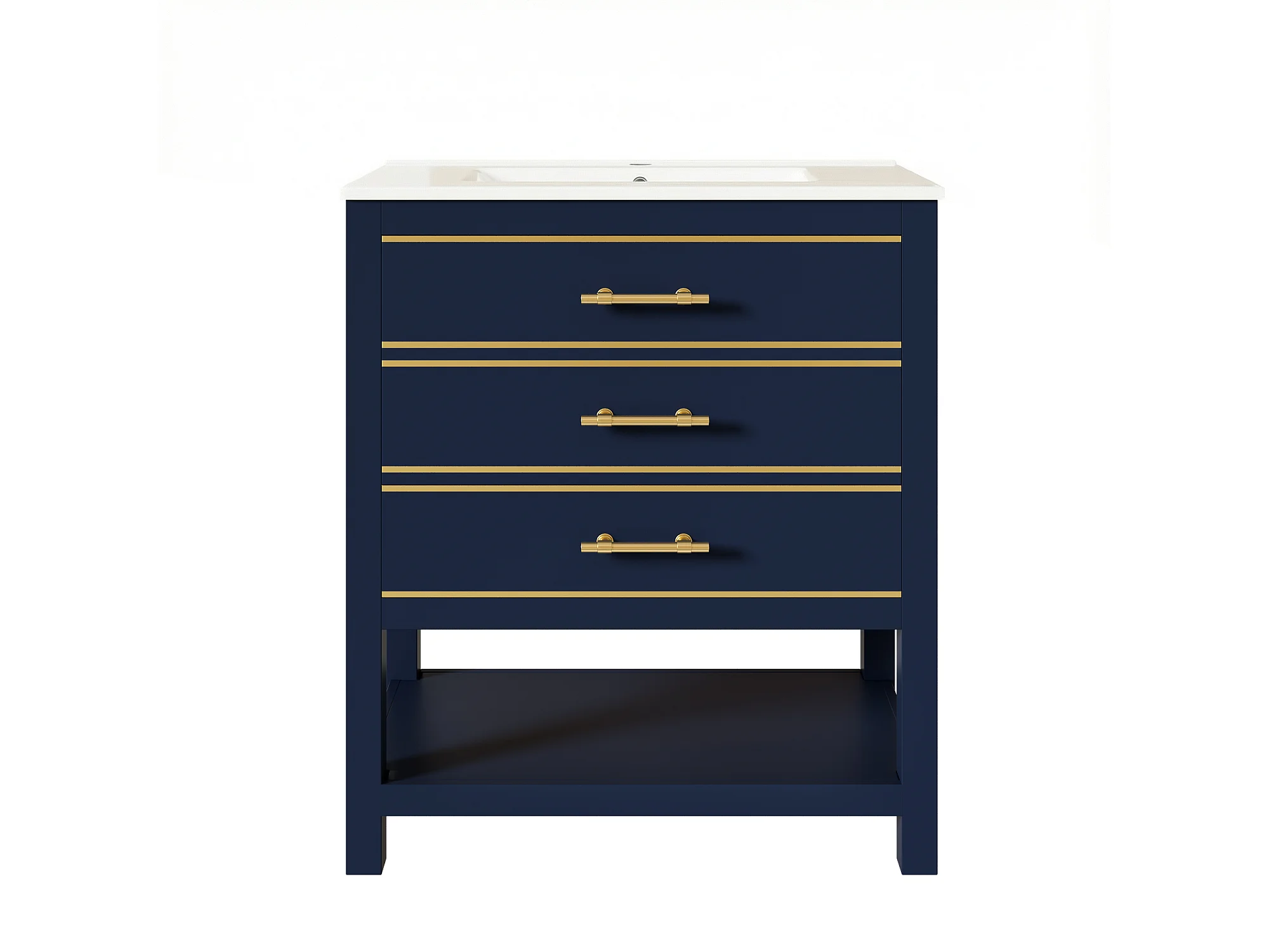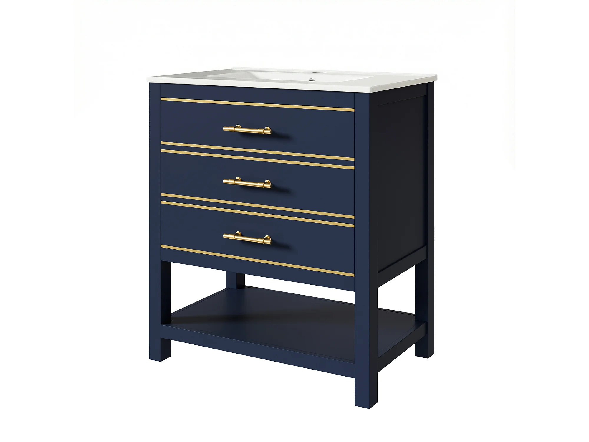 Mebel łazienkowy - z ceramiczna umywalką - z 2 szufladami i 1 otwartą przegródką - niebieski (bateria nie jest wliczona w cenę)