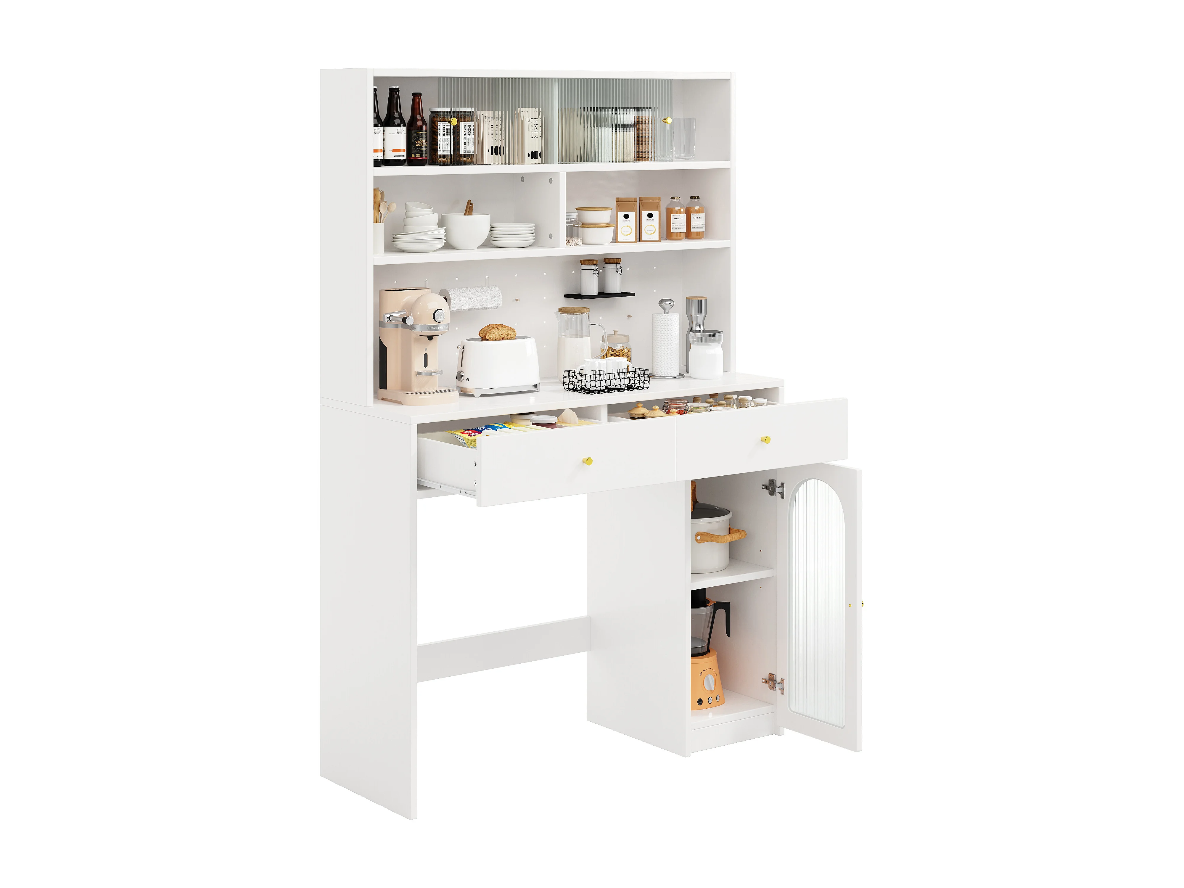 Meble kuchenne - zawiera blat roboczy - z 2 szufladami - regulowane półki i otwarte miejsce do przechowywania - biały