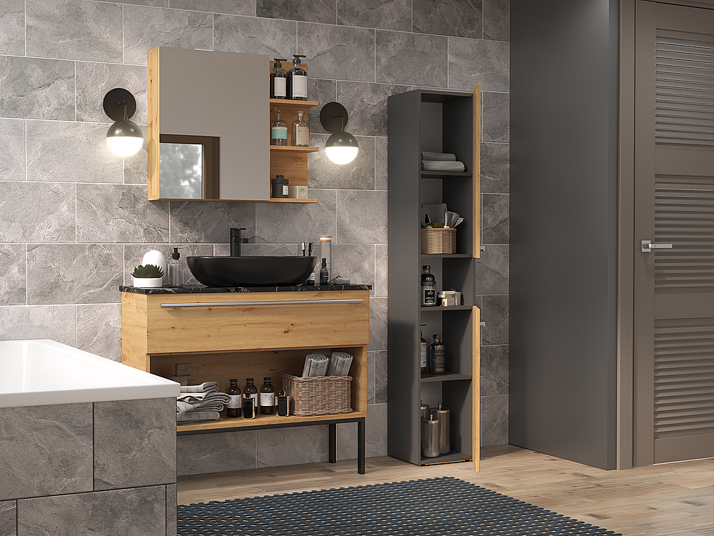 Meble łazienkowe, Antracyt / Dąb Artisan, 30 x 174 x 30 cm