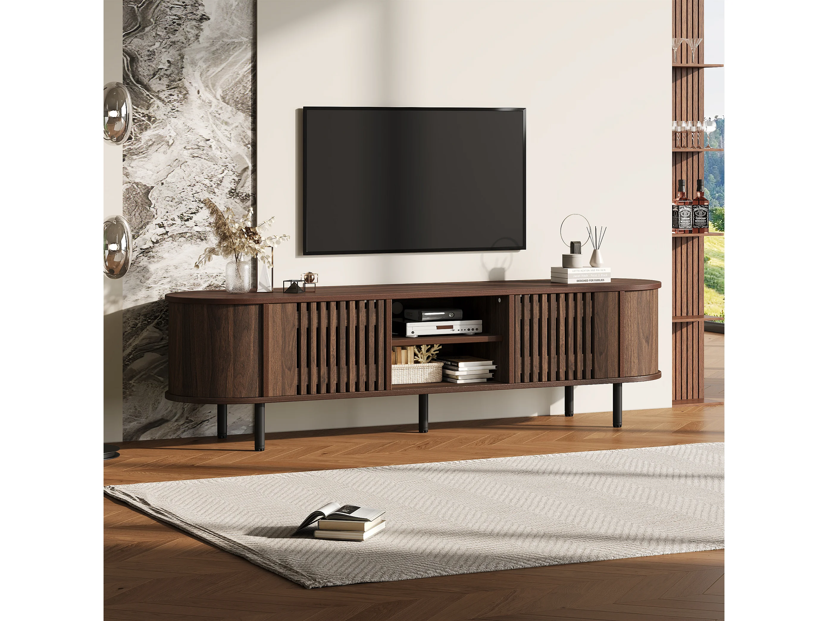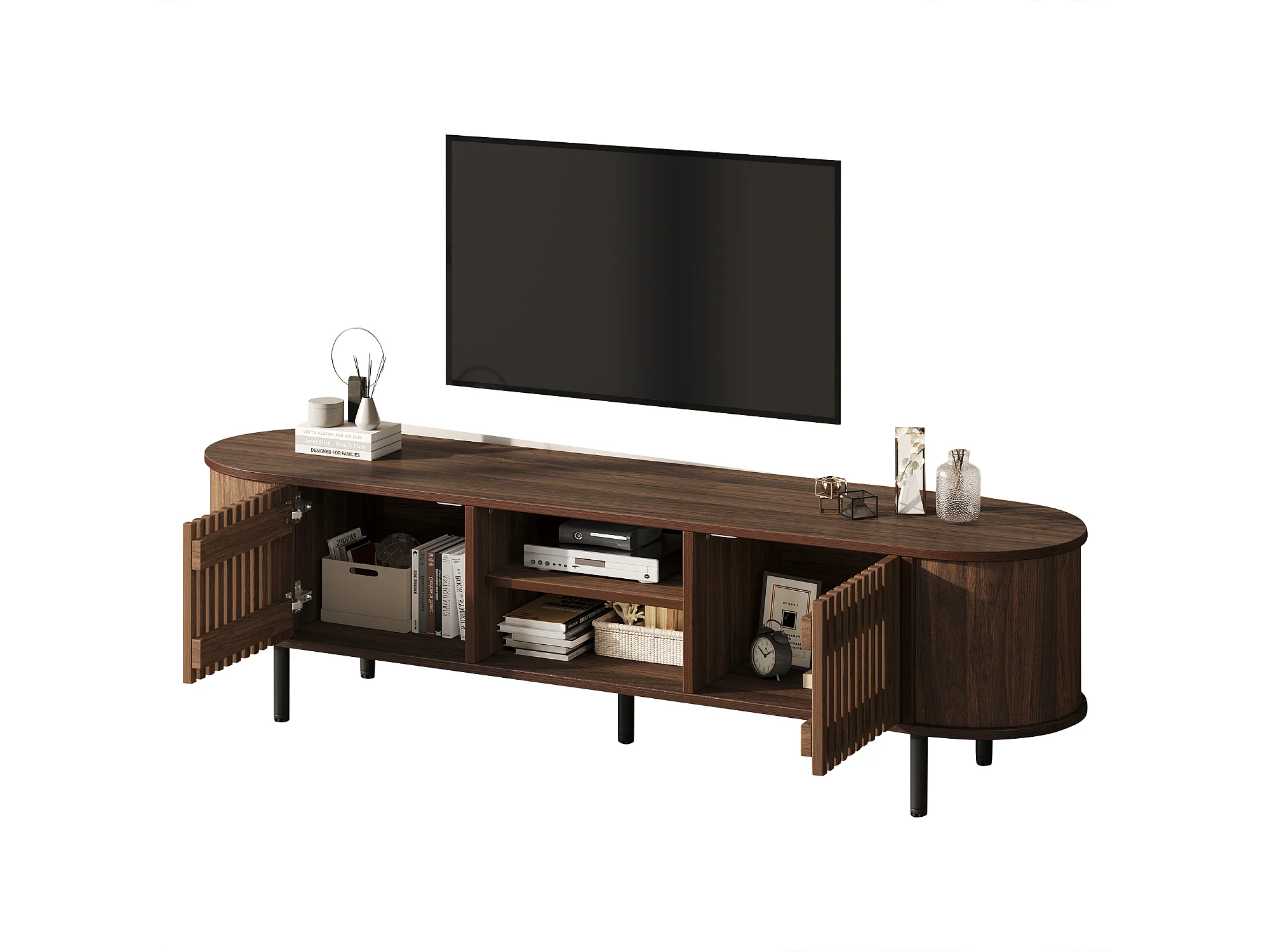 Meble TV 160x40x47 cm - z 2 drzwiami - Półotwarte przechowywanie - Wzór ażurowy - Nogi metalowe - MDF - Brązowy