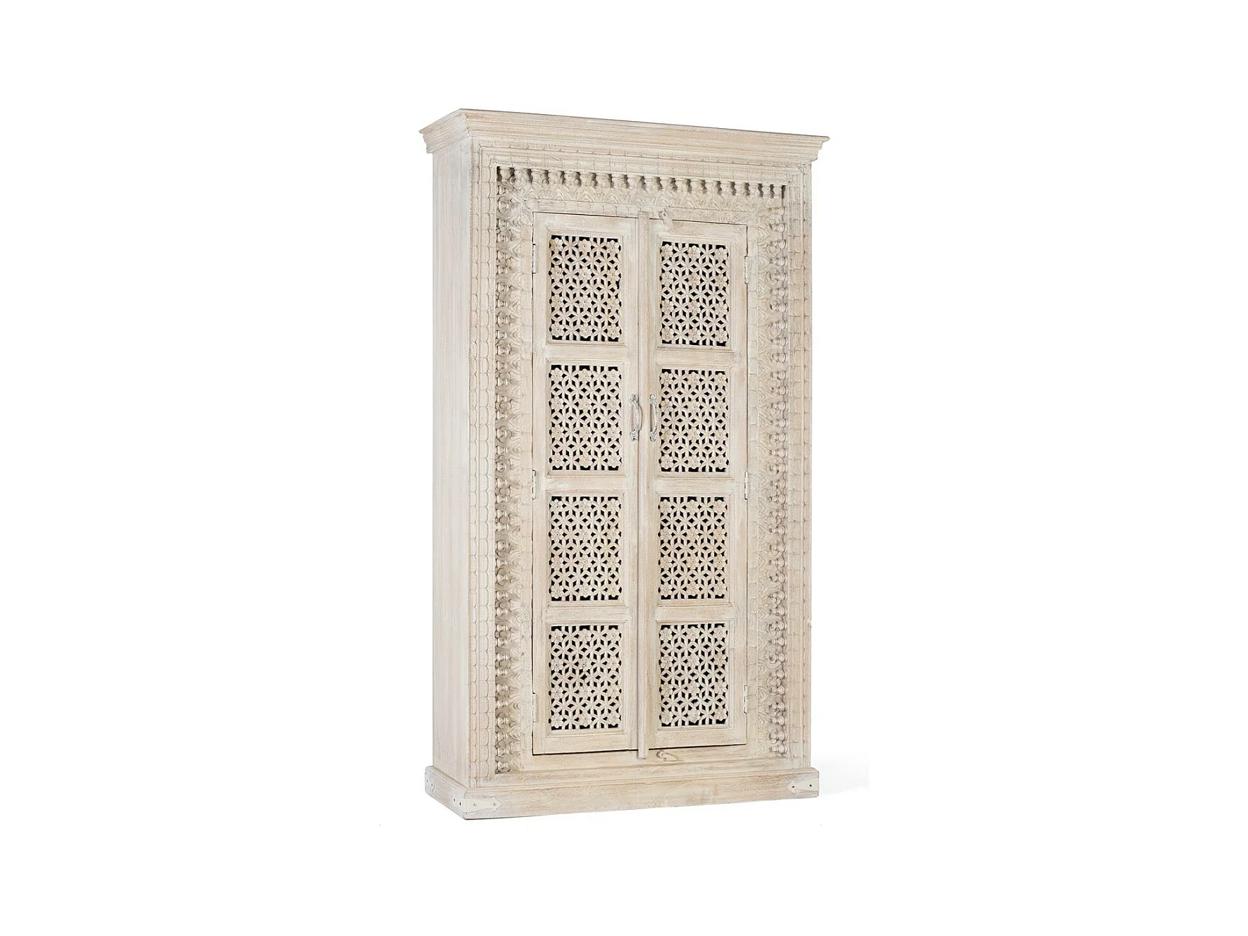 Szafa z drewna mango z postarzanymi detalami z kości słoniowej