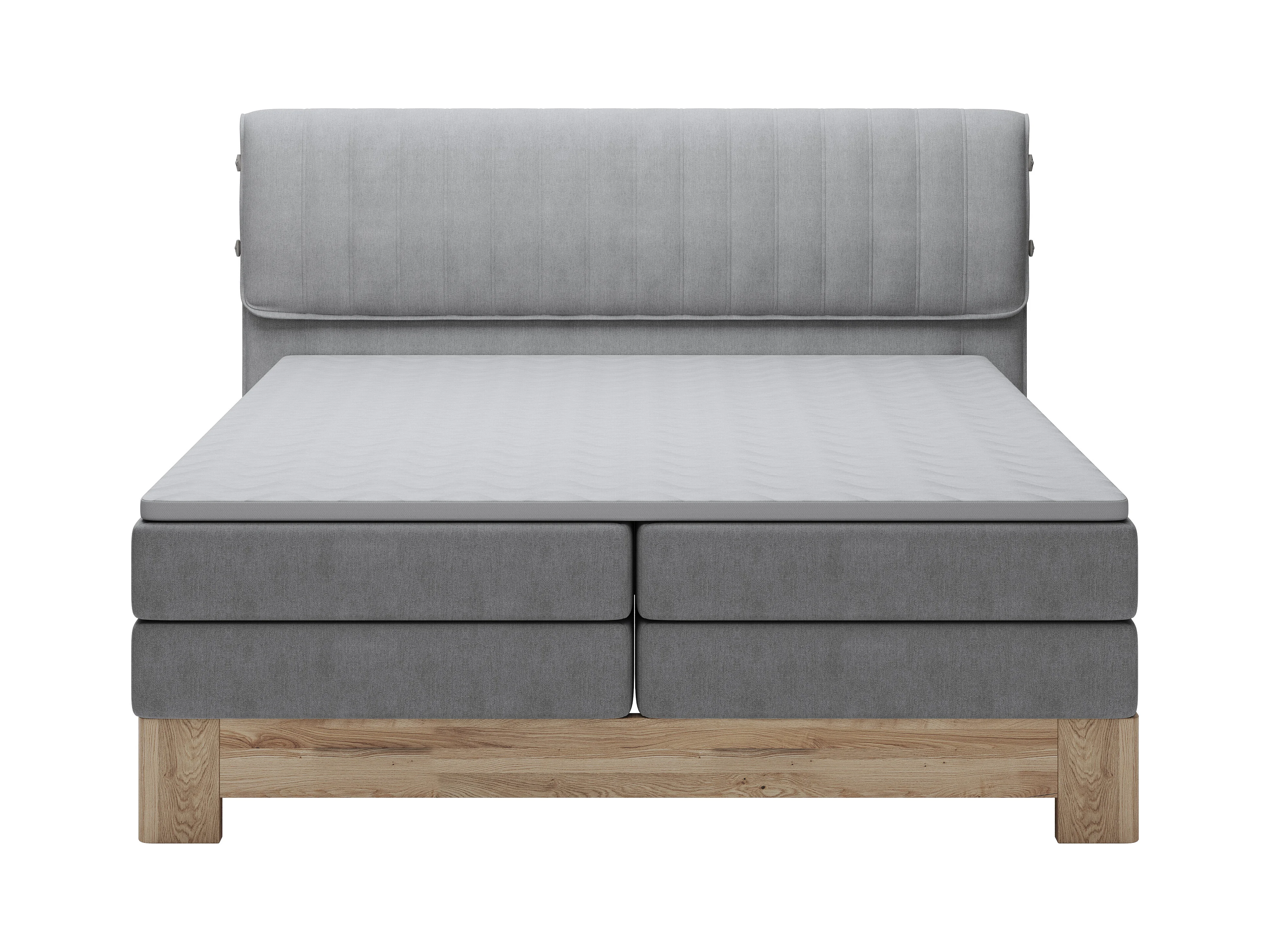 MELIA, Łóżko Tapicerowane na sprężynach kieszeniowych, rama dębowa, elastyczny materac, powierzchnia spania: 180x200 cm, jasnoszary
