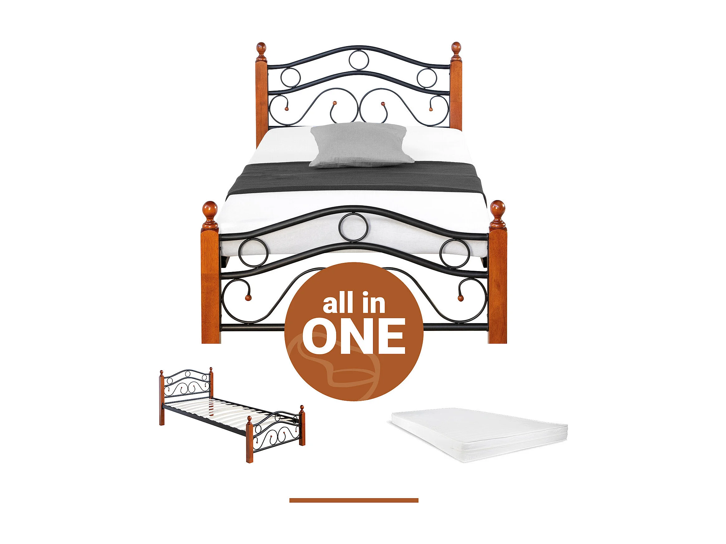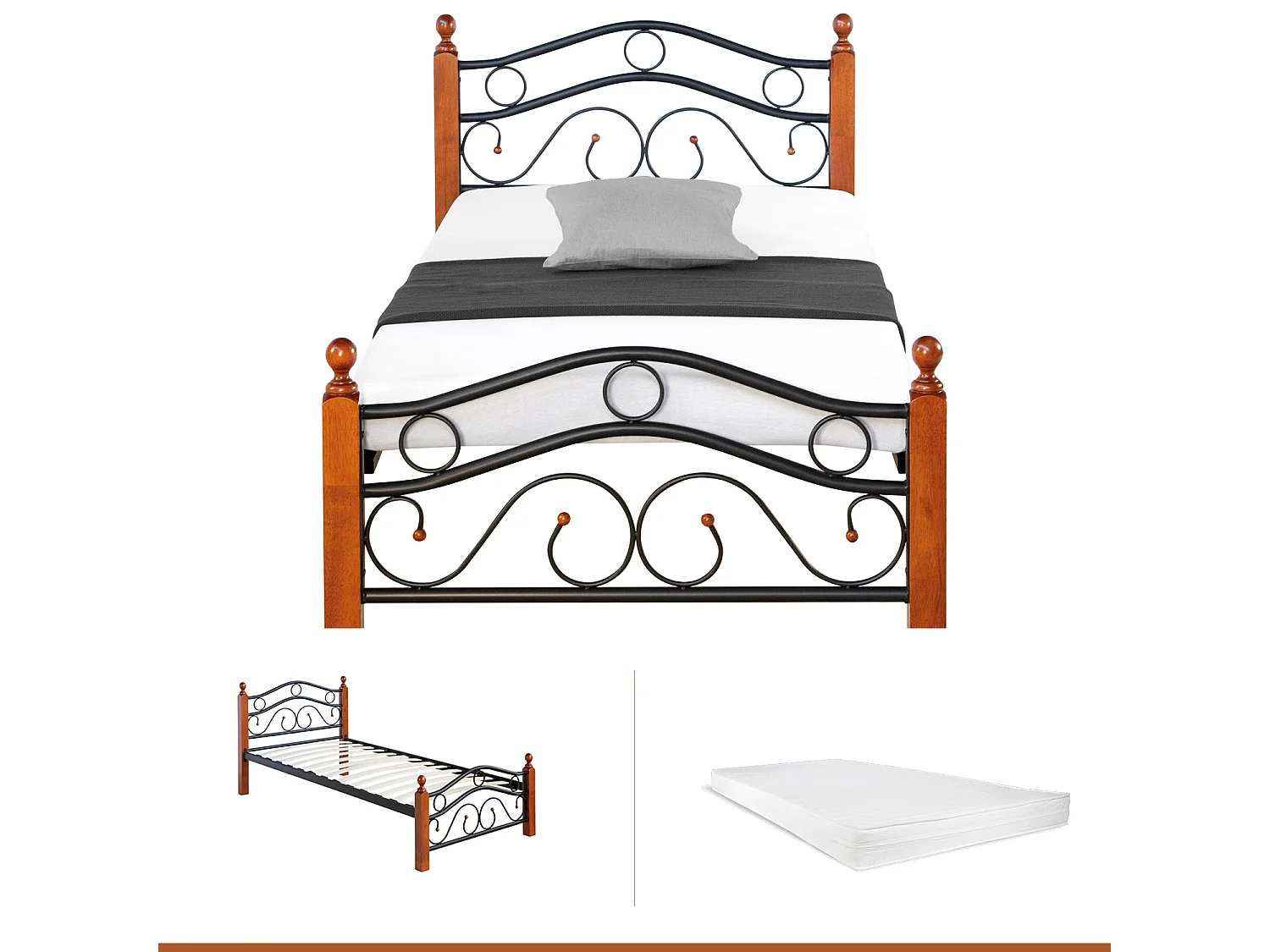 Metalowe łóżko 90x200 cm Czarny Brązowy