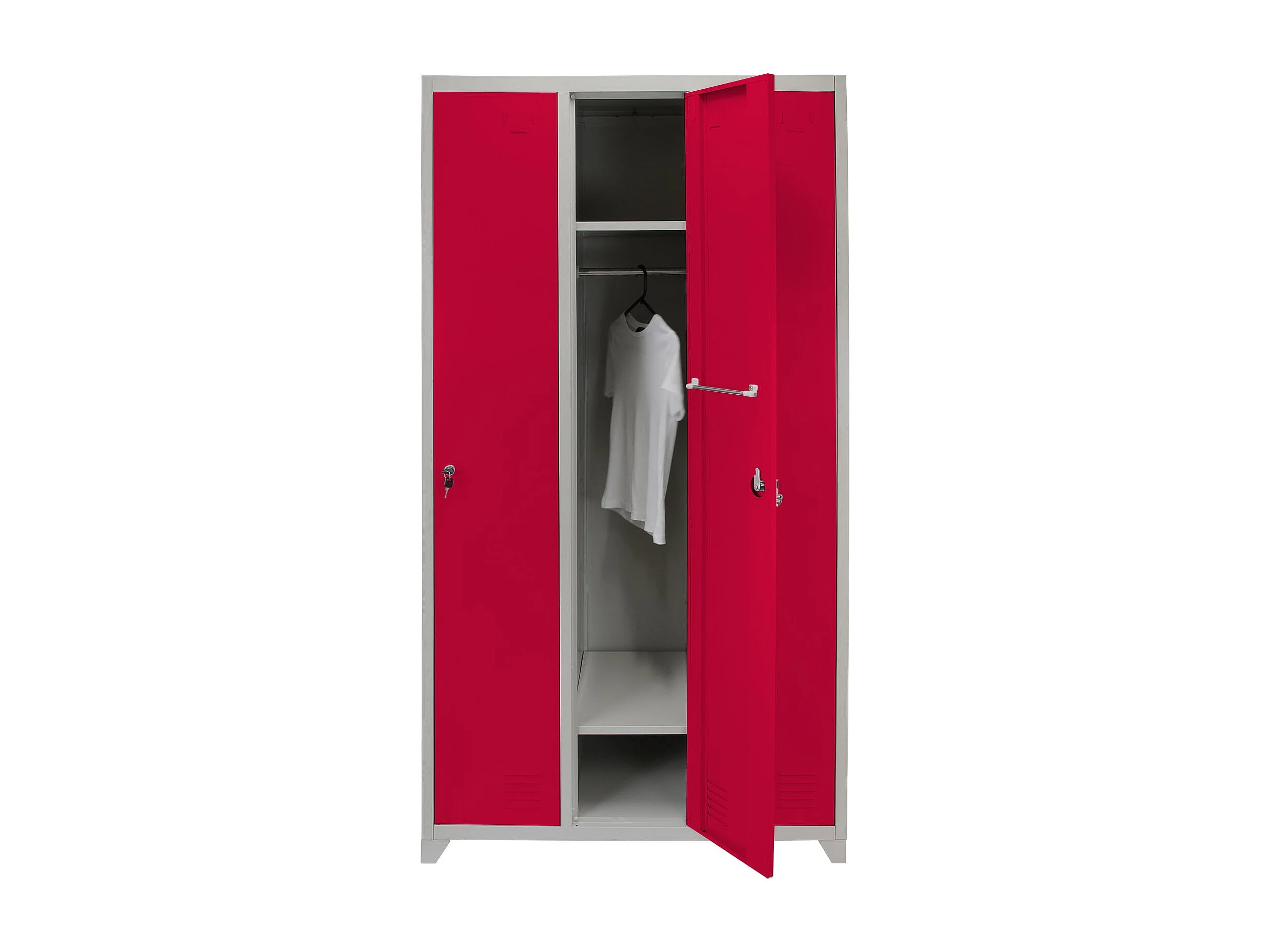 Metalowe szafki magazynowe – trzy szerokie drzwi, czerwone