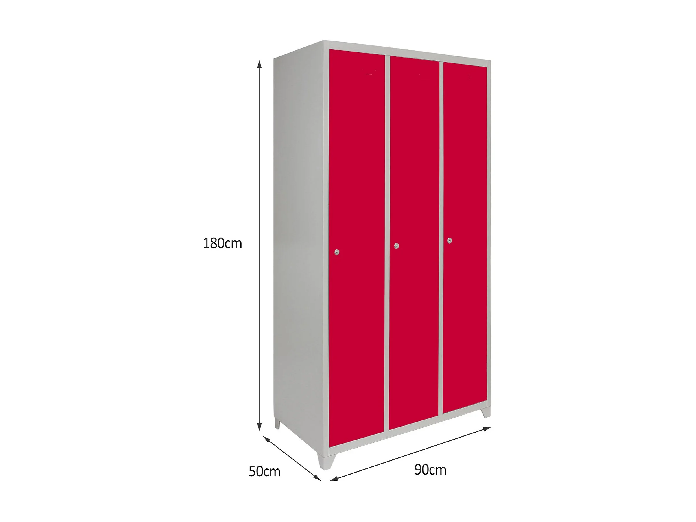 3 x metalowe szafki do przechowywania – trzy drzwi, czerwone – w płaskim opakowaniu