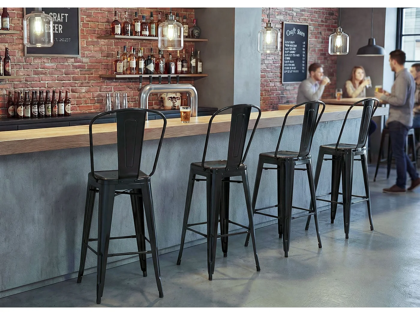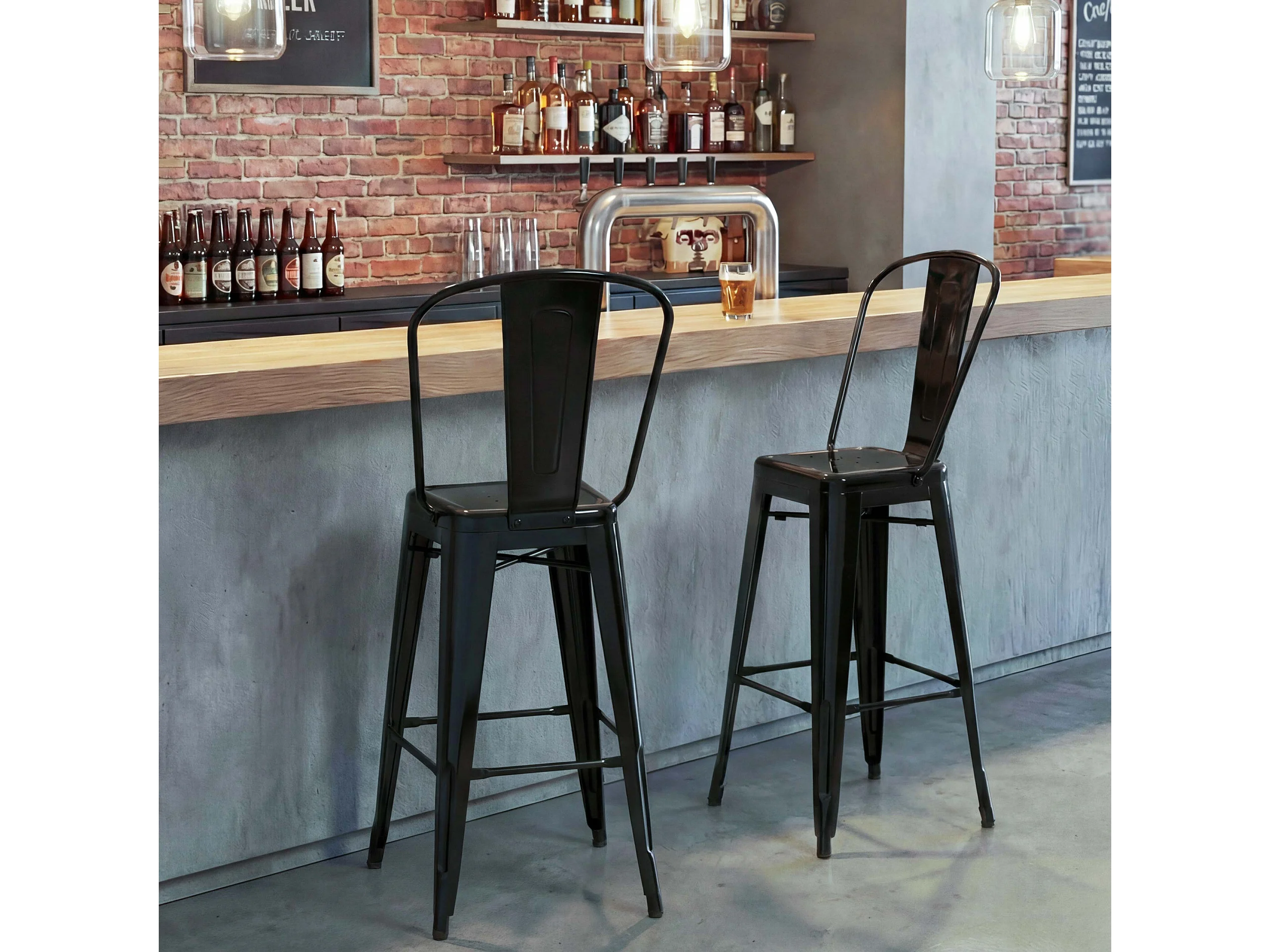 Stołki barowe MCW-A73 metalowe (zestaw 2 szt.), czarne