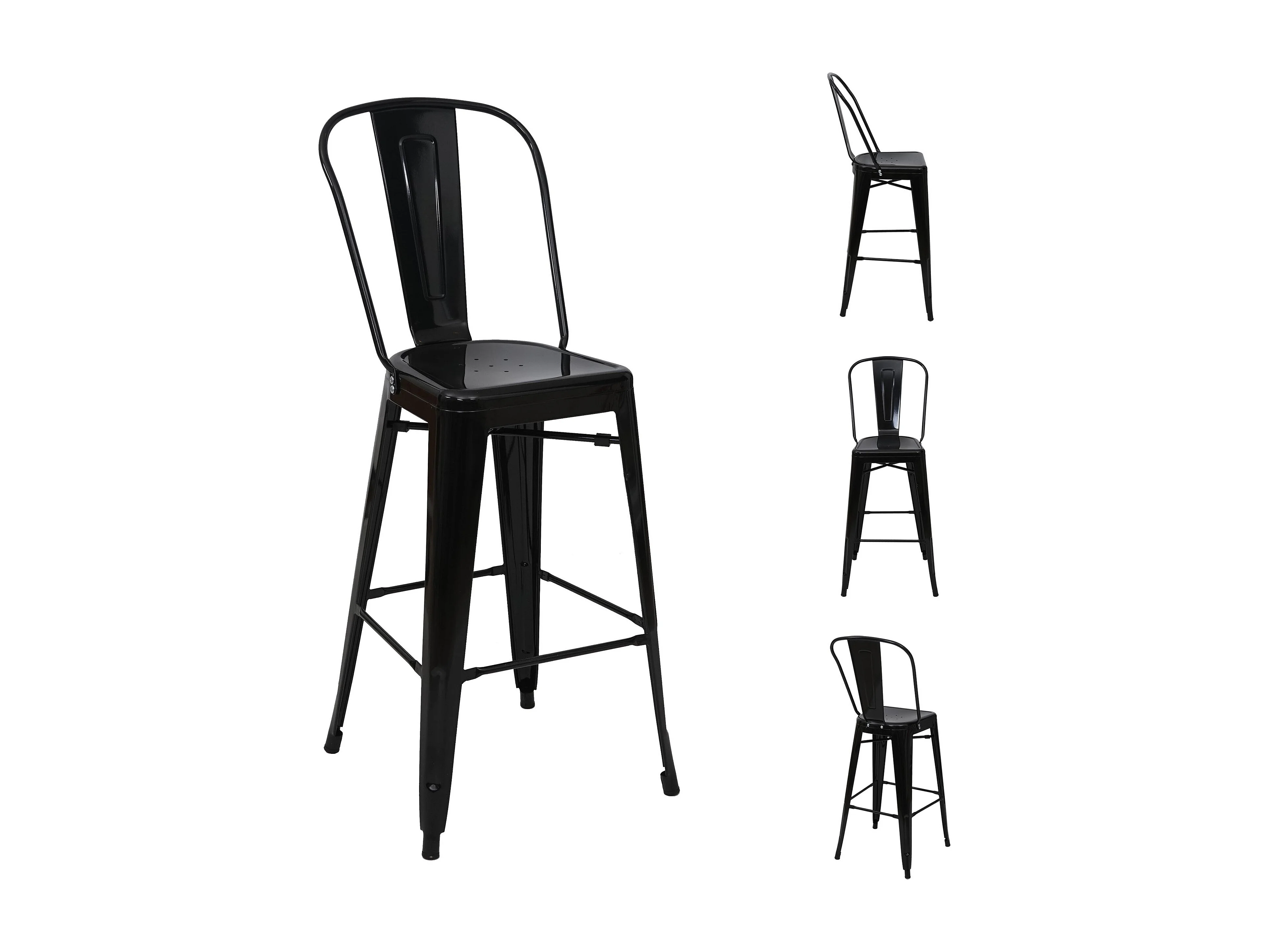 Metalowy stołek barowy MCW-A73 (zestaw 4 sztuk), czarny