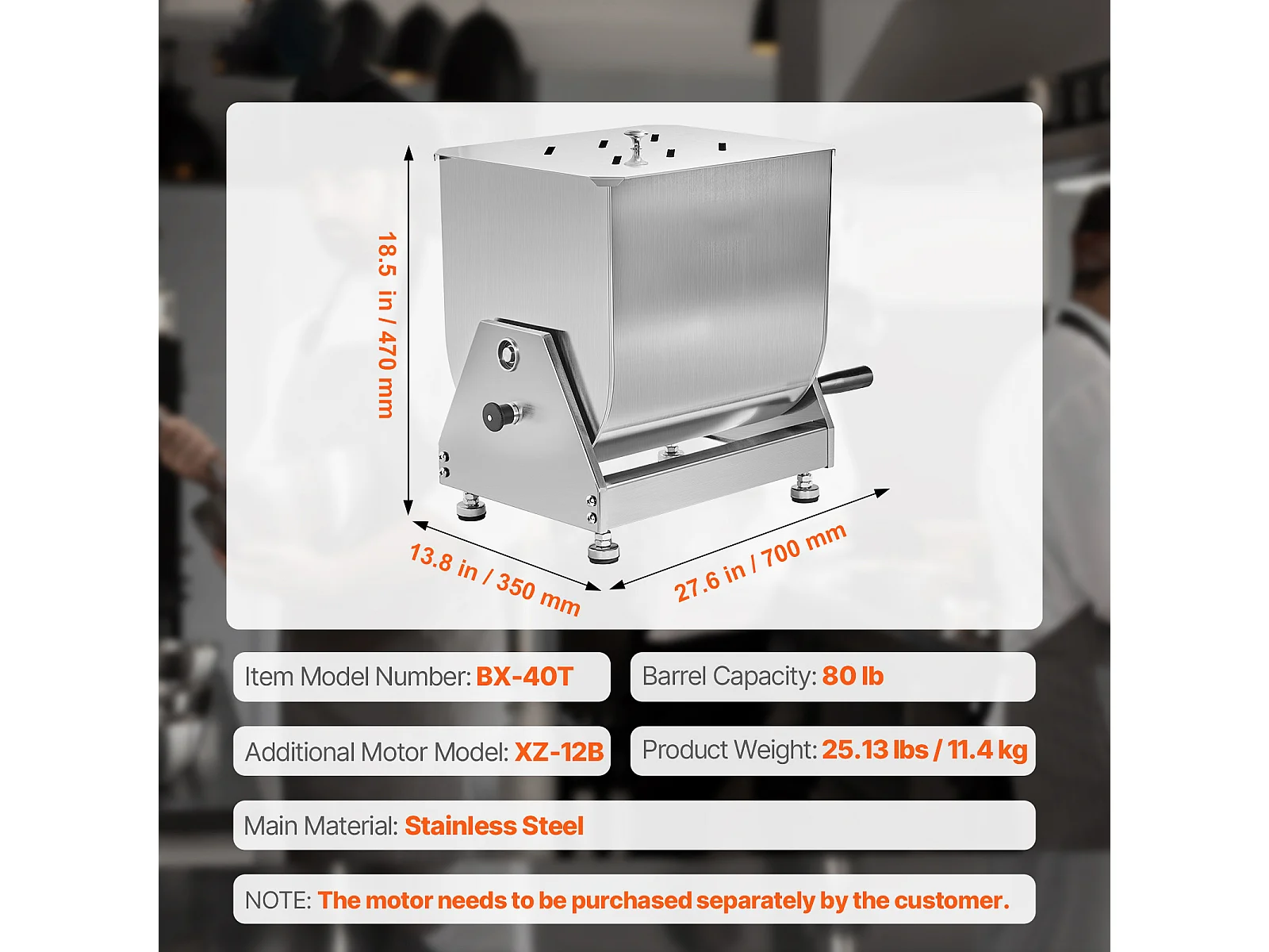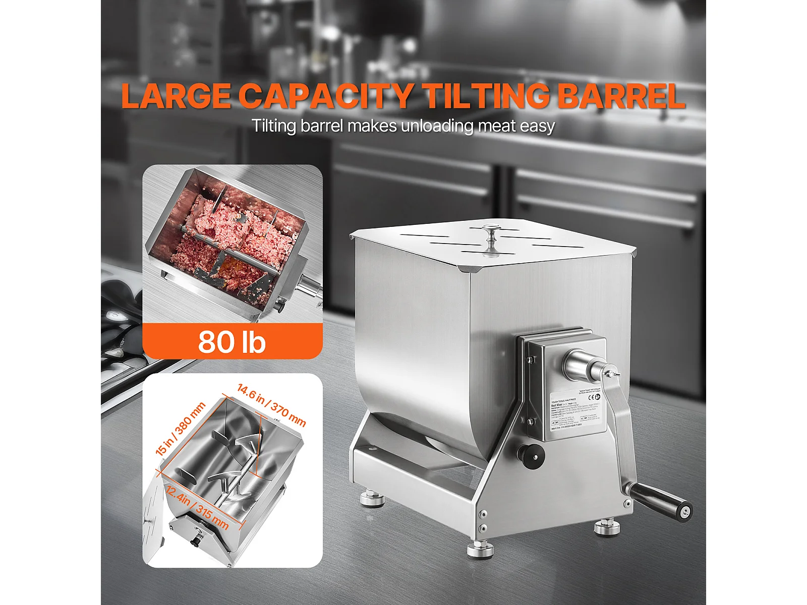 Mieszalnik do Mięsa SucceBuy, Ręczny z Pochylanym Zbiornikiem o Pojemności 80 L z Reduktorem Prędkości
