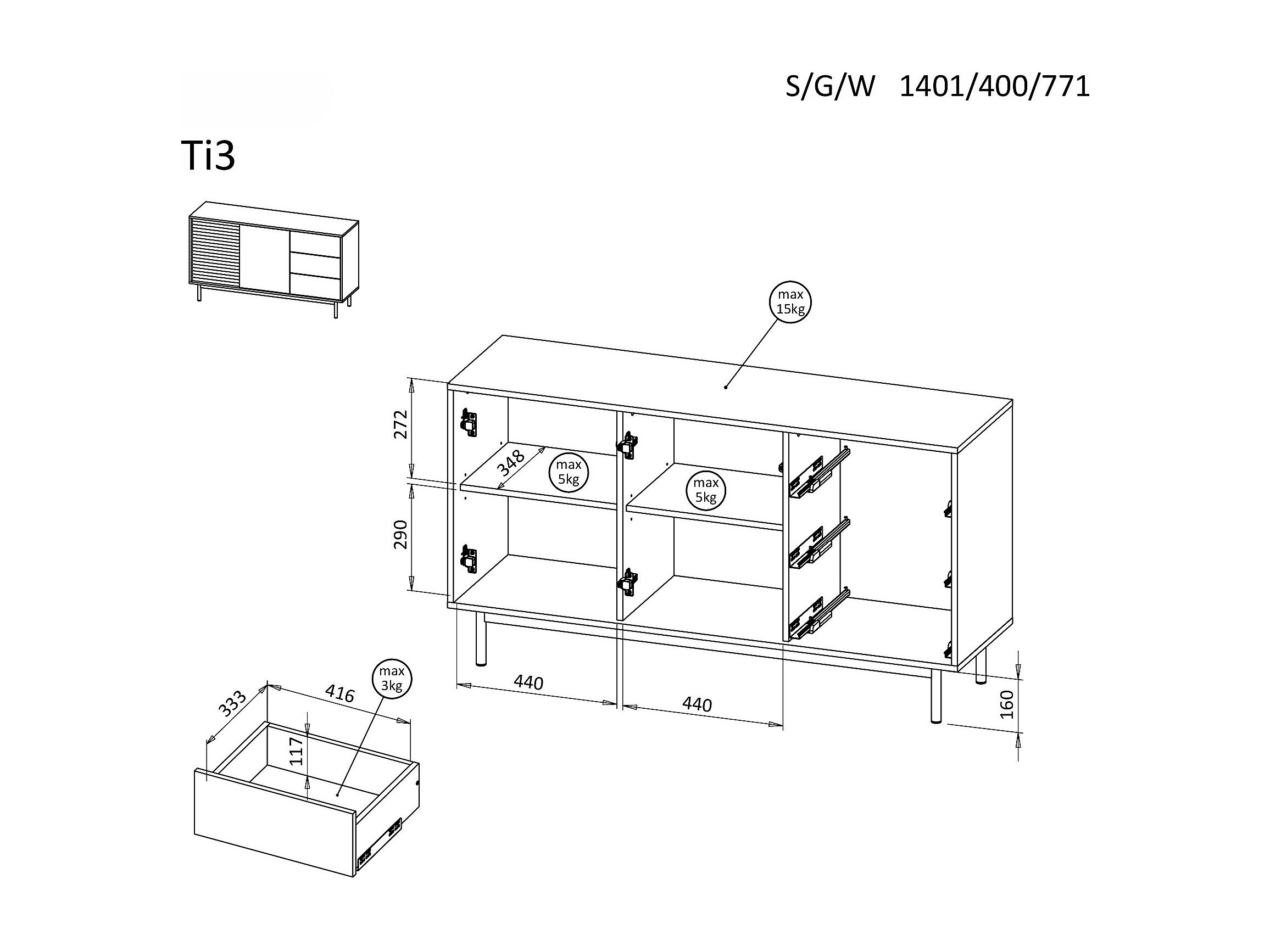 MINIO go for it, Komoda LITA 3, dąb olejowany/kaszmir