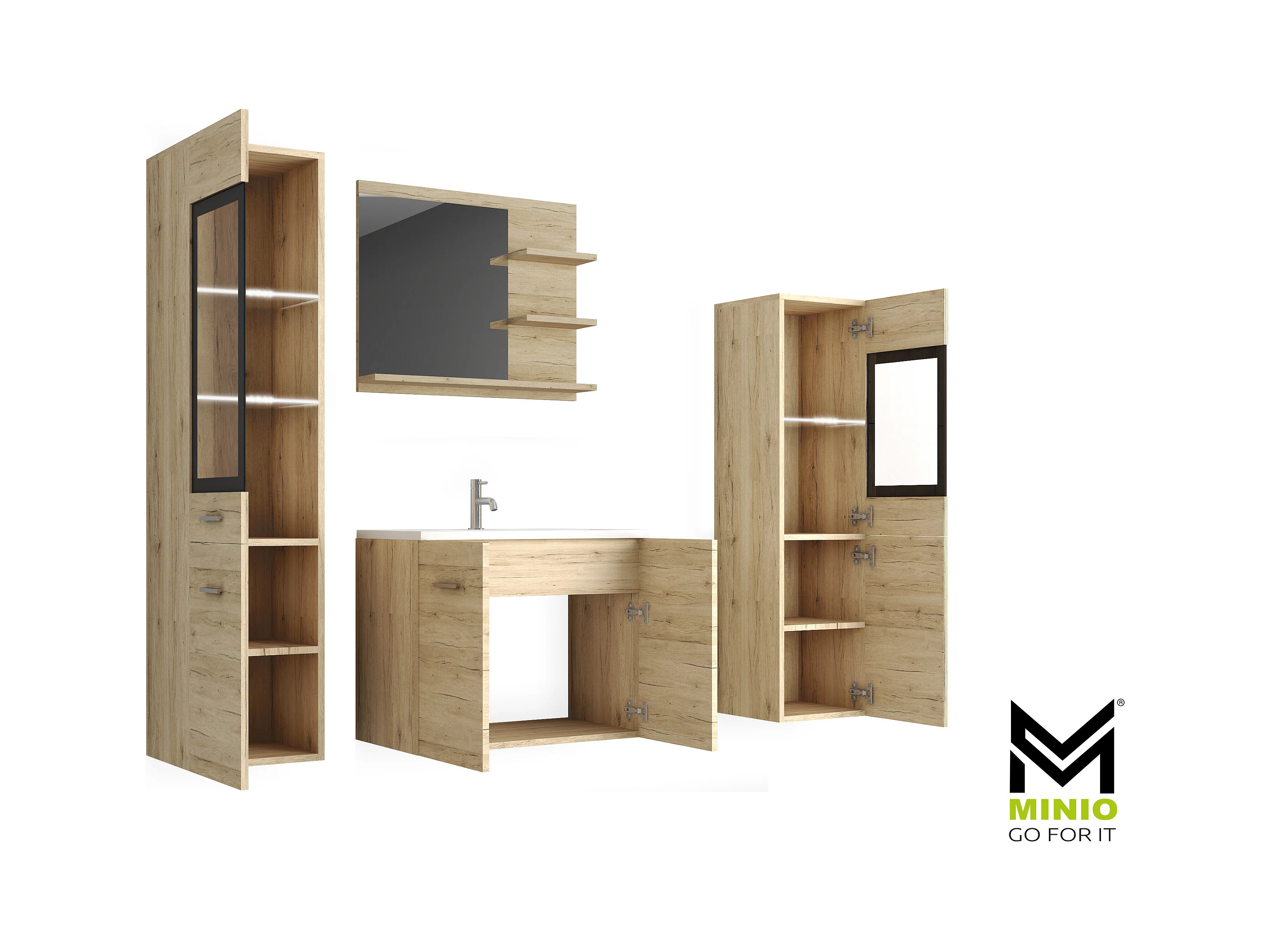 MINIO go for it, Meble łazienkowe MARIT I w kolorze dąb san remo, z oświetleniem LED