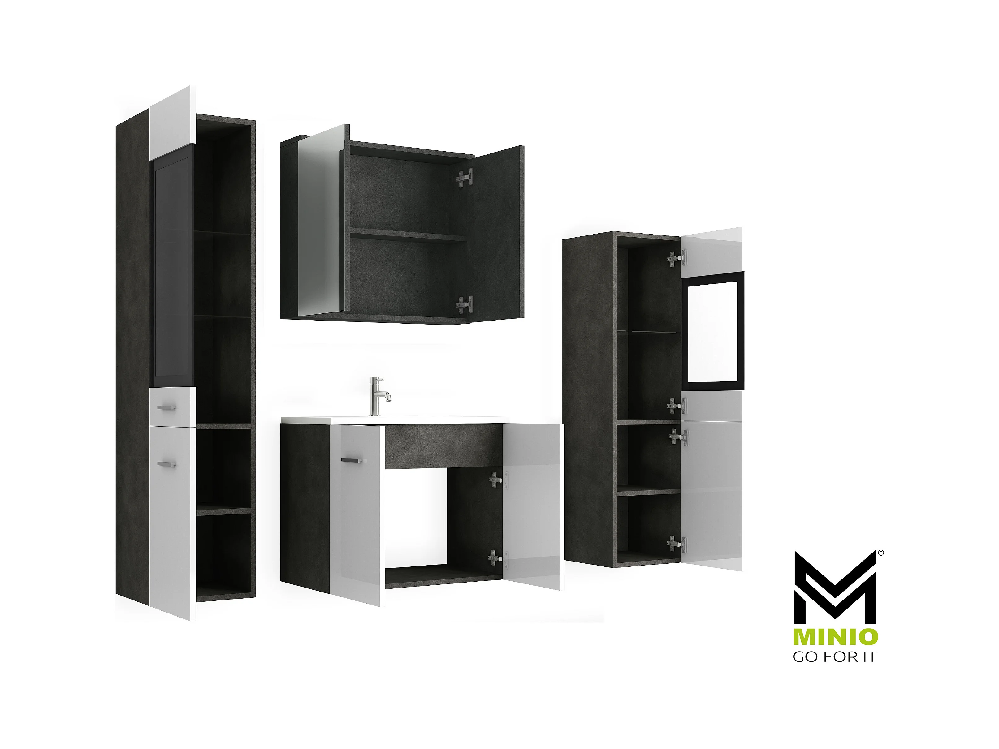 MINIO go for it, Meble łazienkowe MONTANA XL w kolorze biały/szary połysk