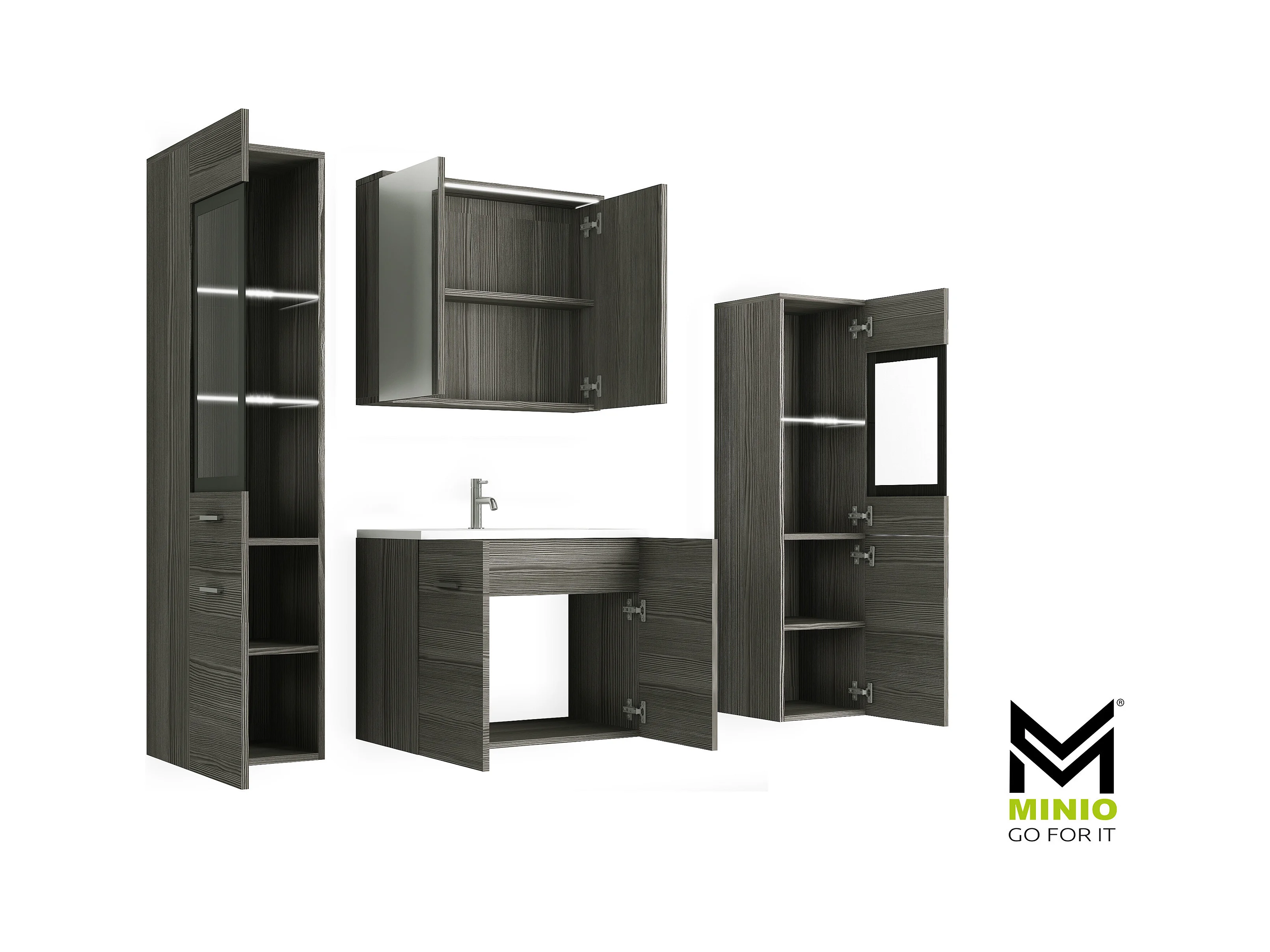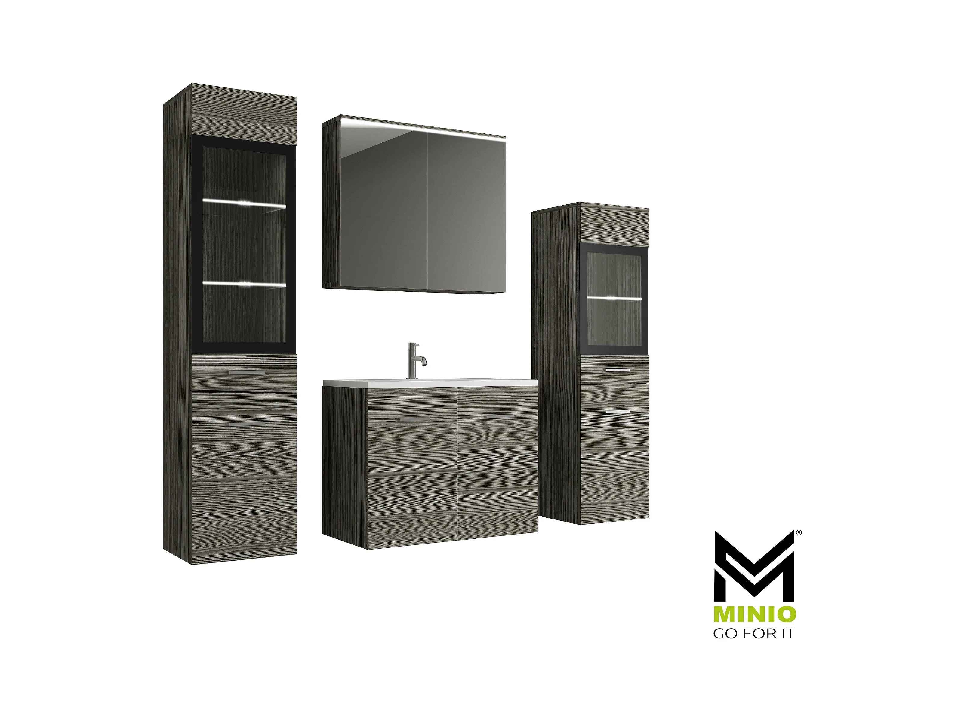 MINIO go for it, Meble łazienkowe MARIT II w kolorze sosna bodega, z oświetleniem LED