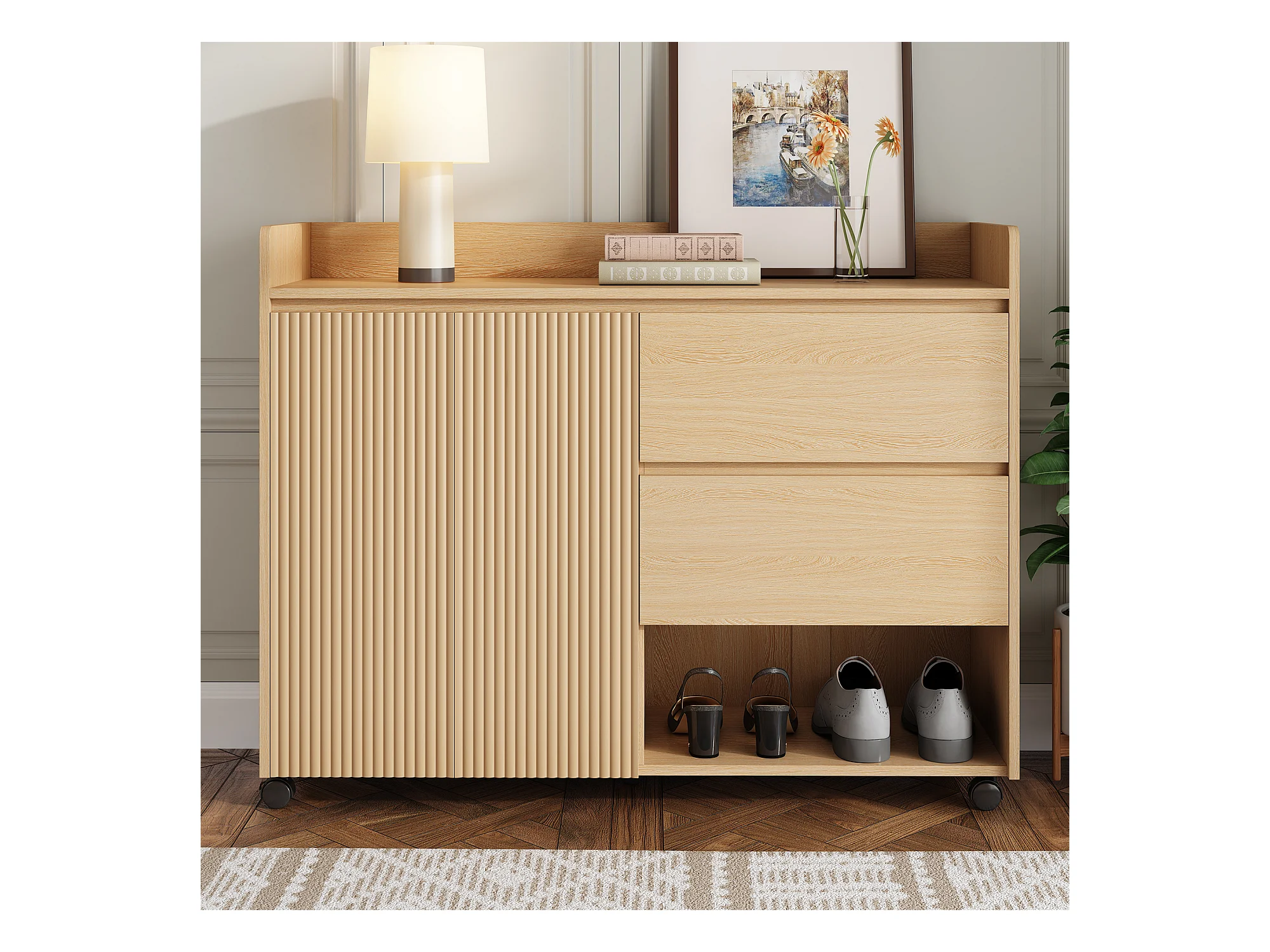 Mobilna szafka na buty - 110 x 35 x 86 cm - z 2 szufladami + 1 drzwiami - MDF - naturalny