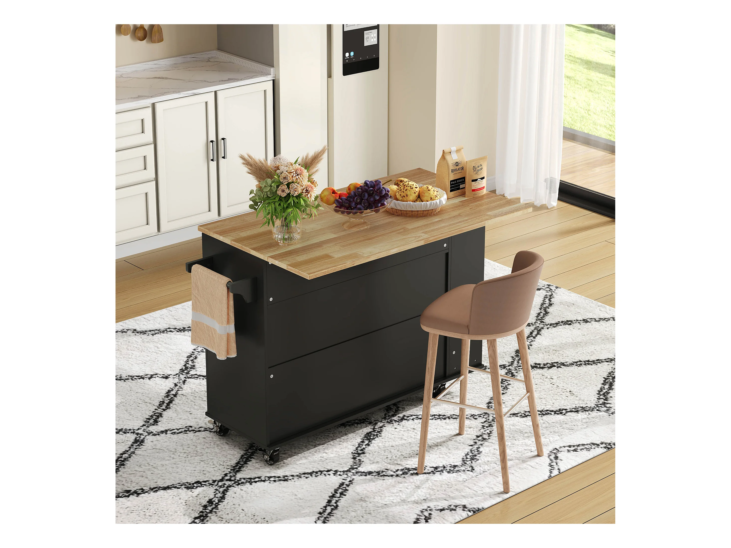 Mobilna wyspa kuchenna - z USB - blat rozsuwany - 3 szuflady i 2 drzwi - z wieszakiem na ręczniki - MDF - czarny