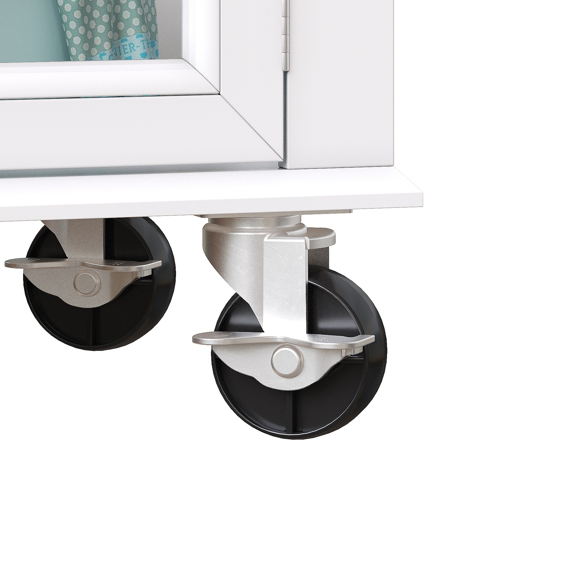 Wyspa kuchenna - wózek na kółkach z rozsuwanym blatem - 2 szuflady i 4 drzwi - Biały