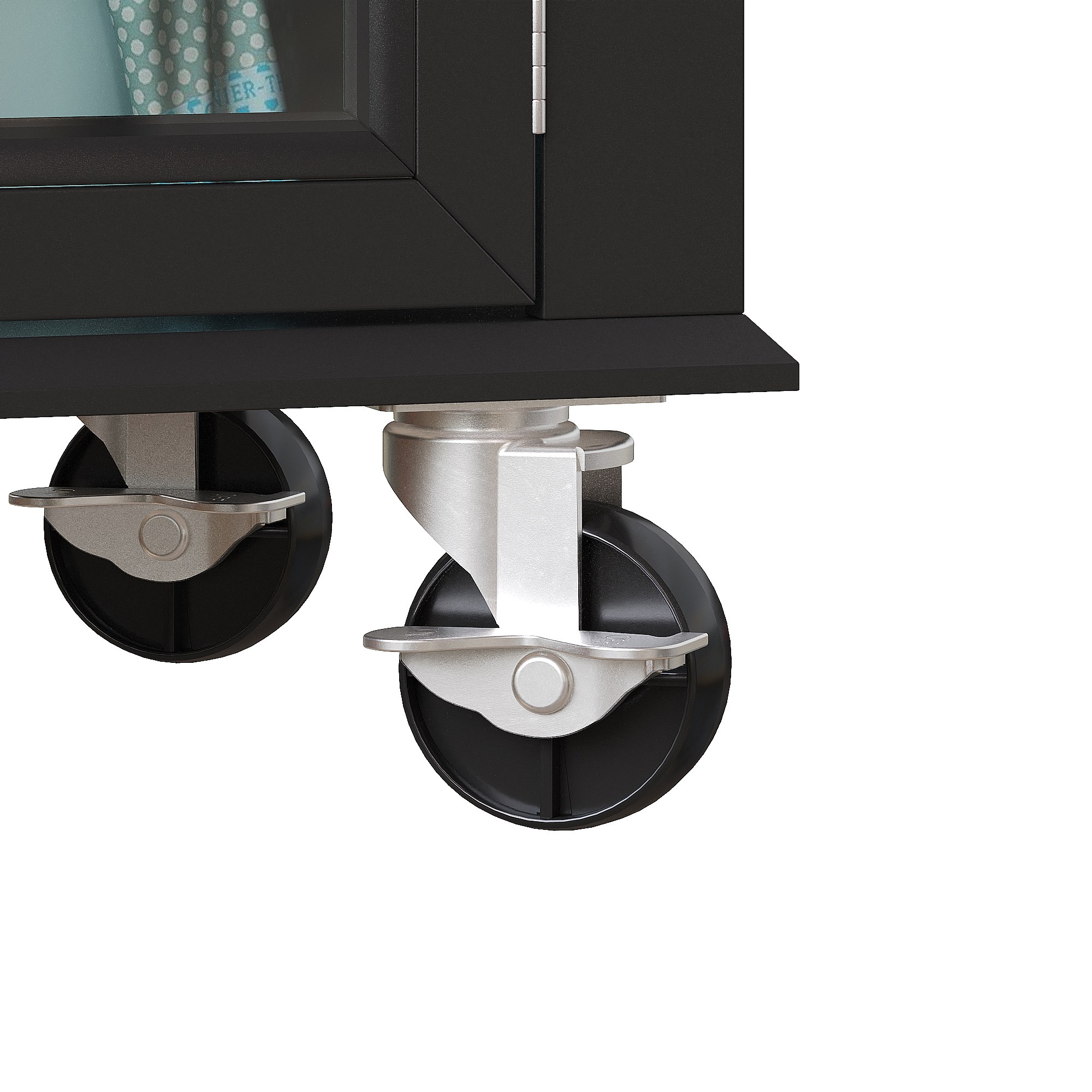 Wyspa kuchenna - wózek na kółkach z rozsuwanym blatem - 2 szuflady i 4 drzwi - Czarny