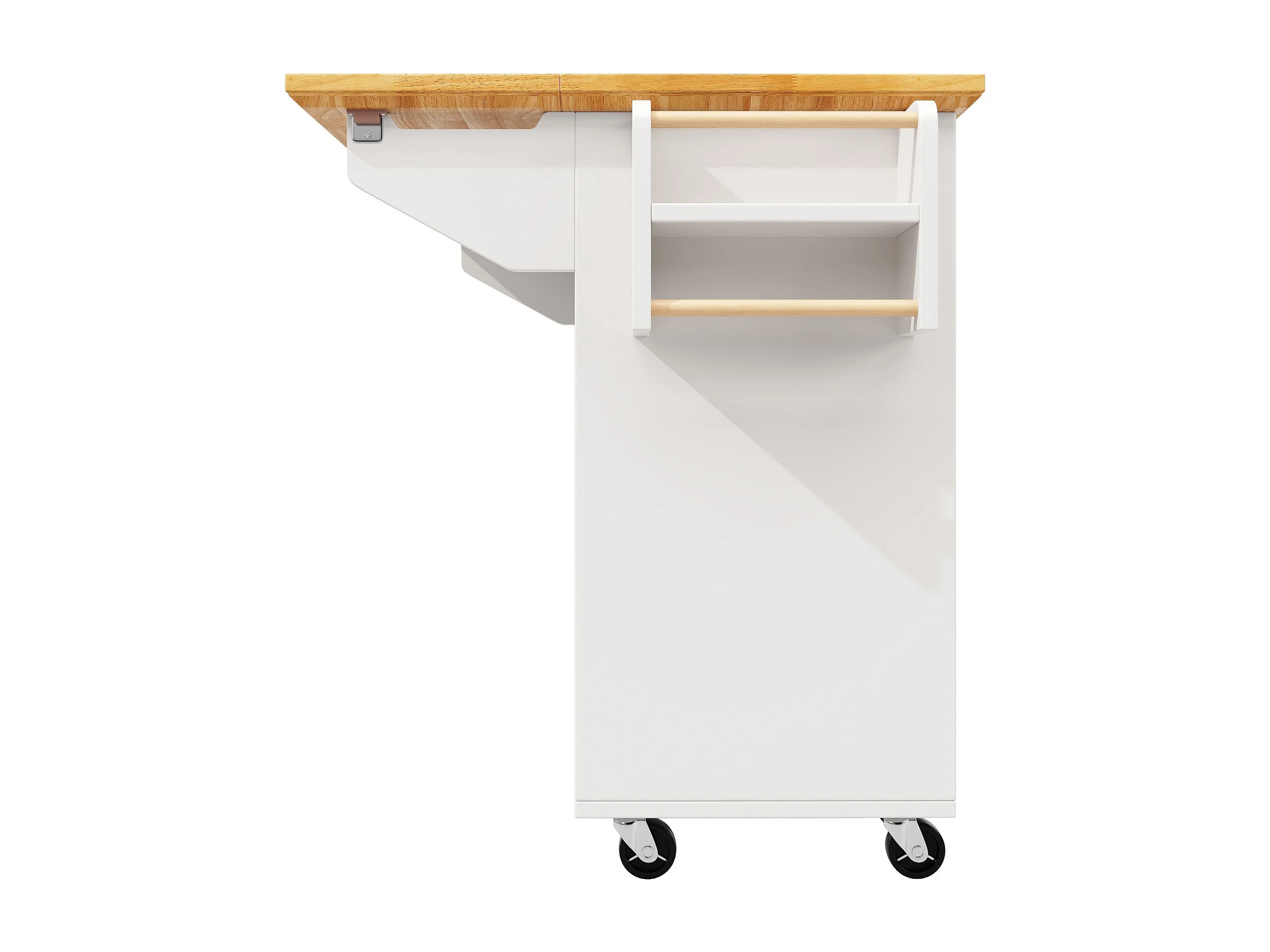 Mobilna wyspa kuchenna ze składanym blatem, 3 drzwiami i 2 szufladami do przechowywania - Biały