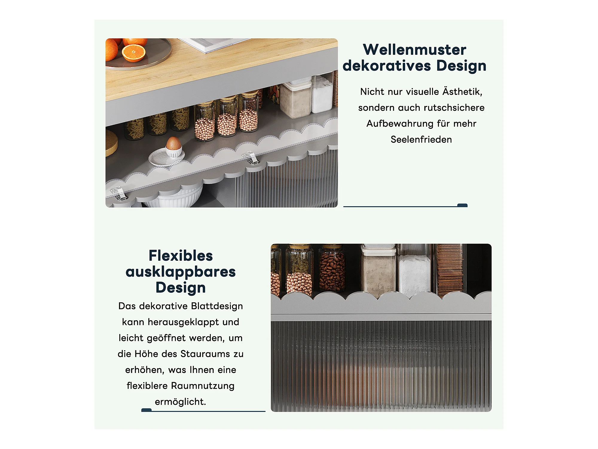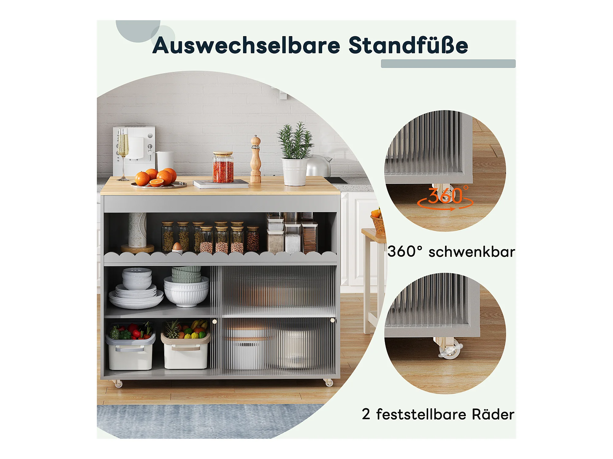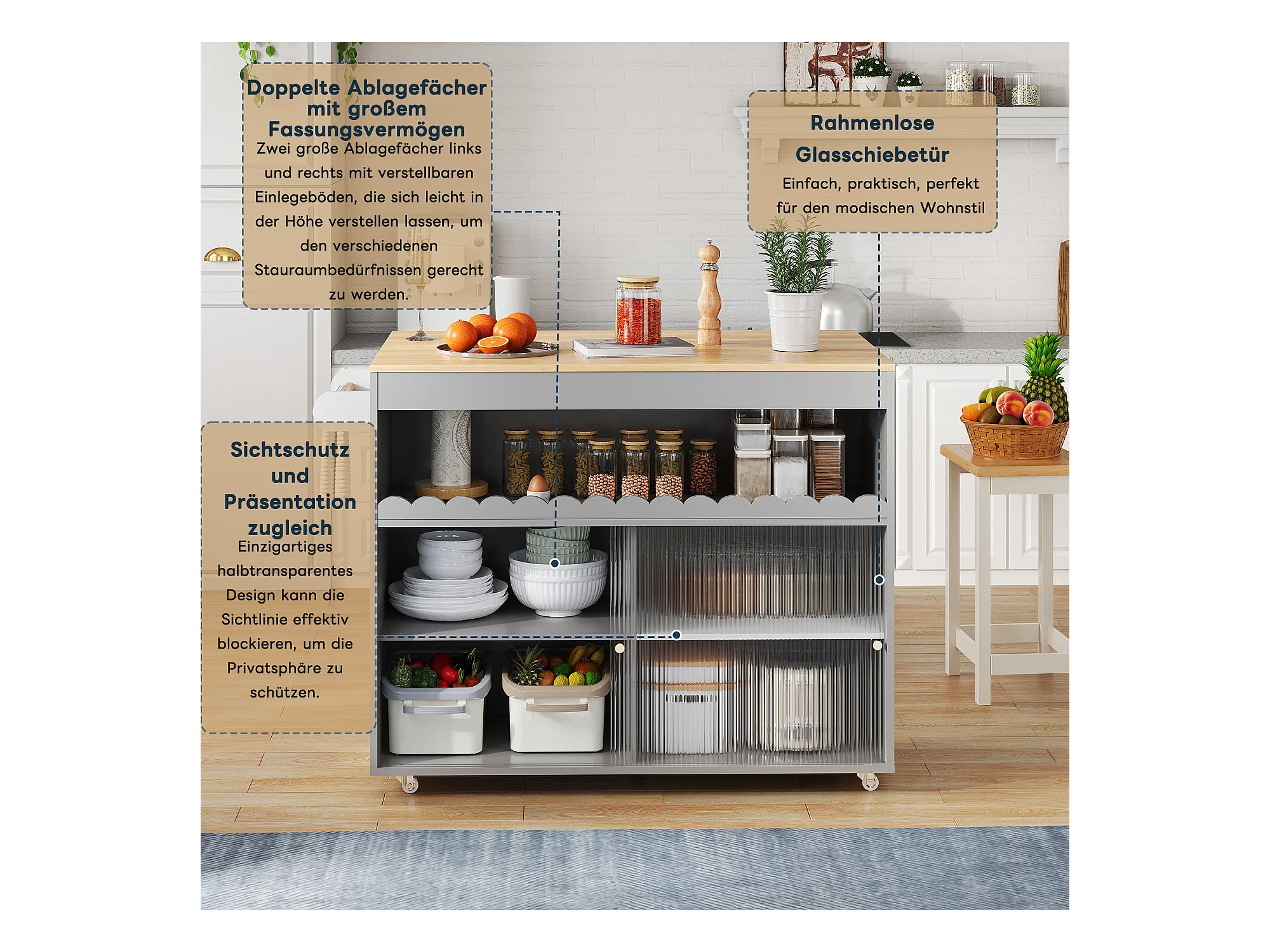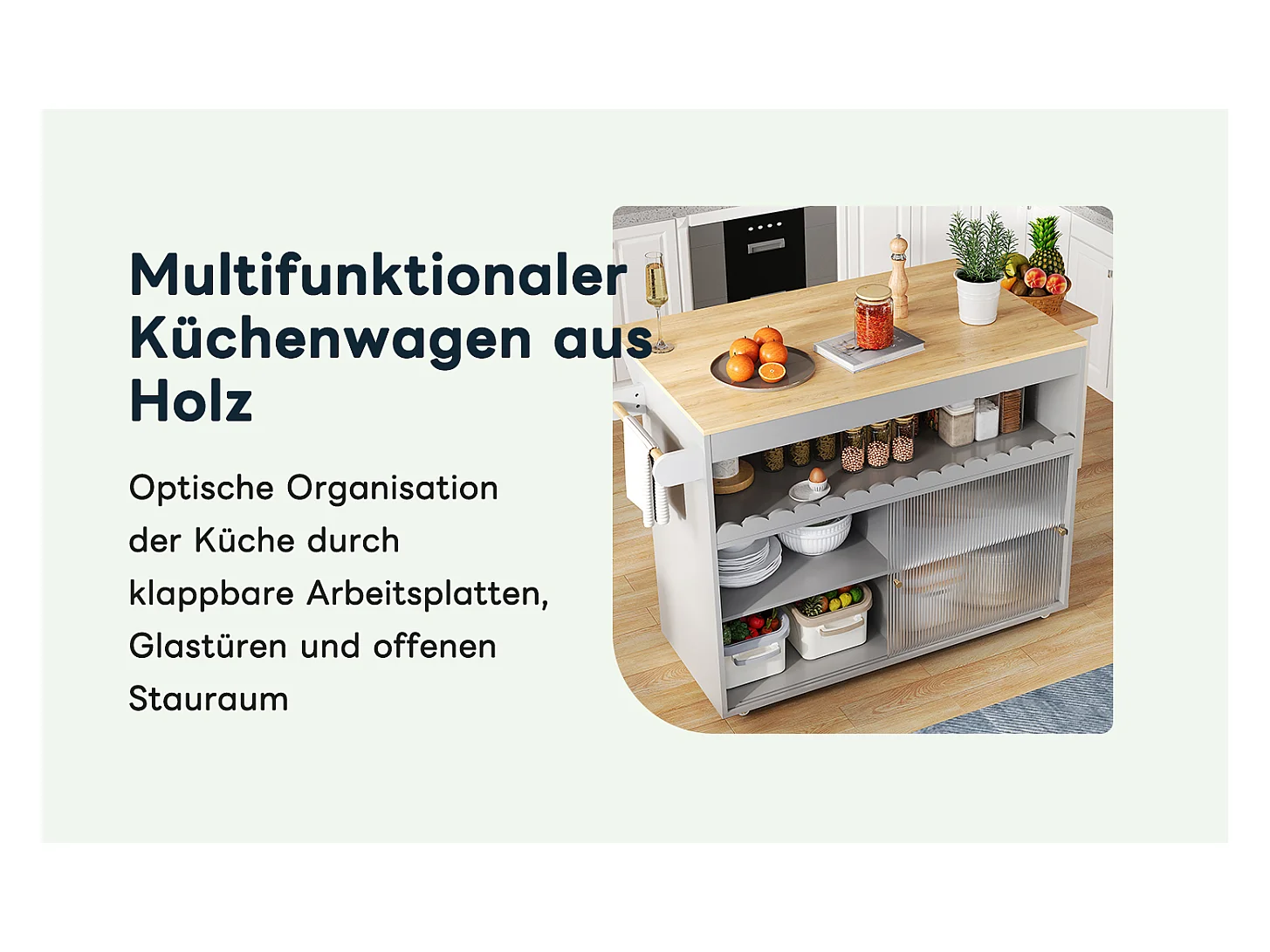 Mobilna wyspa kuchenna z 2 drzwiami przesuwnymi - rozkładany blat - 122x46/69x91 cm - drewno MDF - Szary + naturalny
