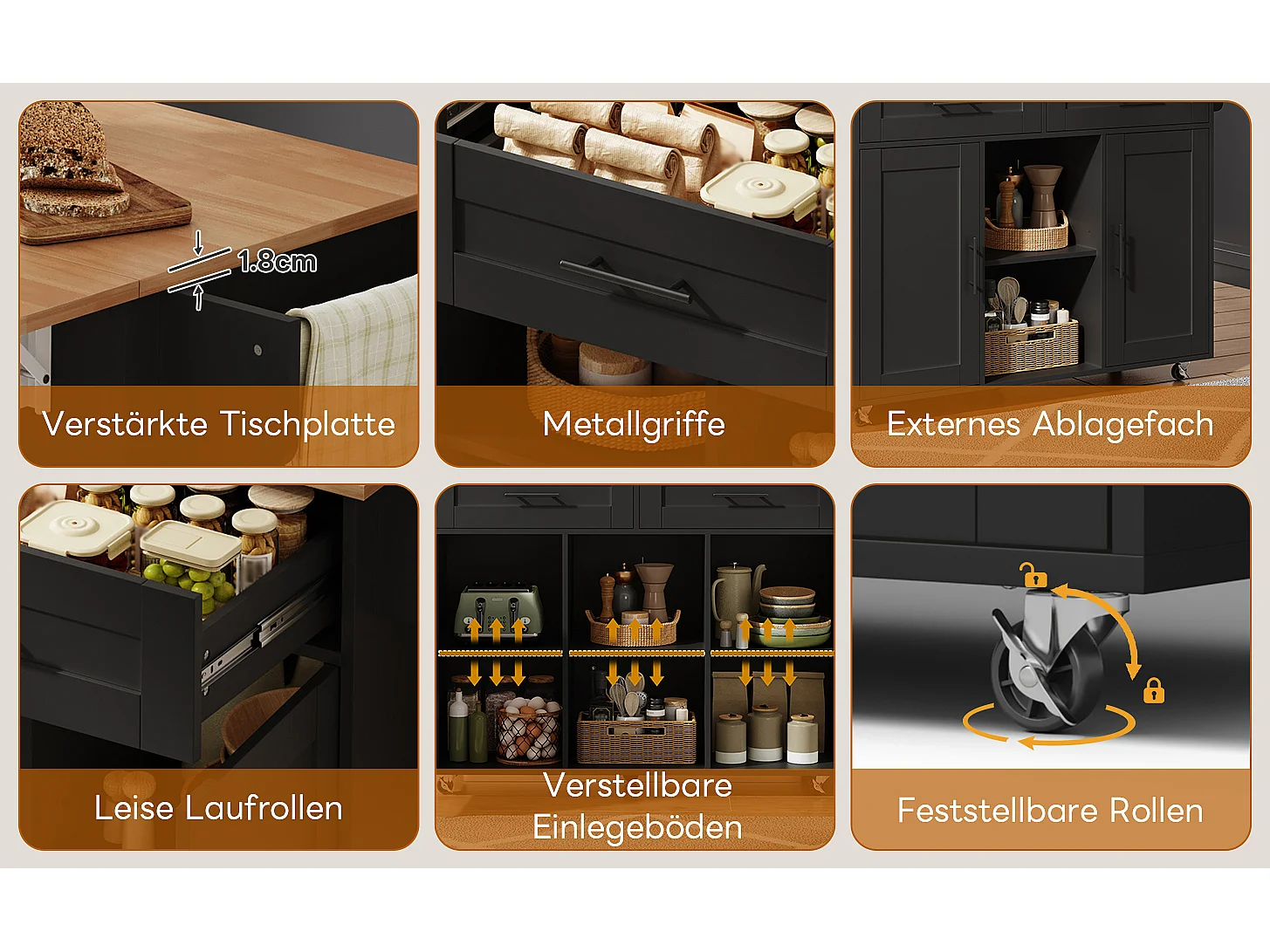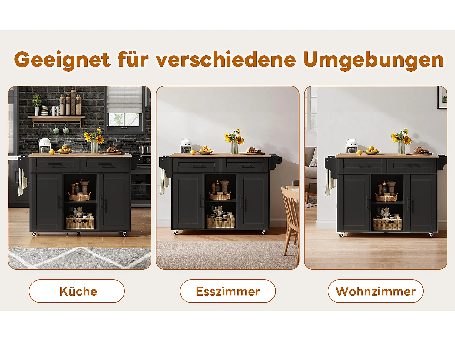 Mobilna wyspa kuchenna z blatem składanym - 145 x 45/70 x 94,5 cm - z półkami + 2 drzwi + szuflada - MDF - czarna