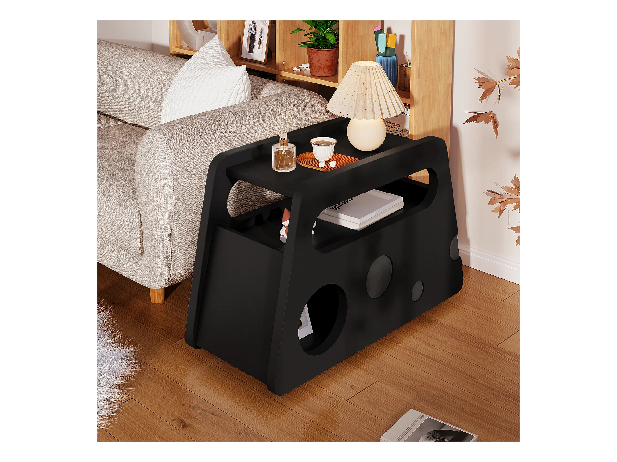 Mobilny stolik boczny z półkami do przechowywania, bufet - 81x33x51,5 cm - MDF - czarny