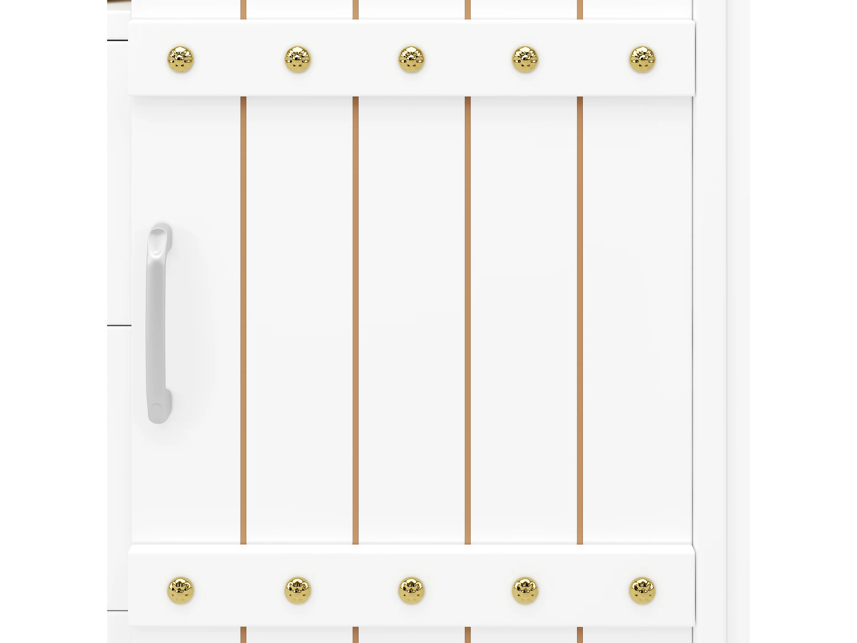 Mobilny wózek kuchenny - Biała wyspa kuchenna z przesuwanymi drzwiami i kółkami - składany blat - 3 szuflady