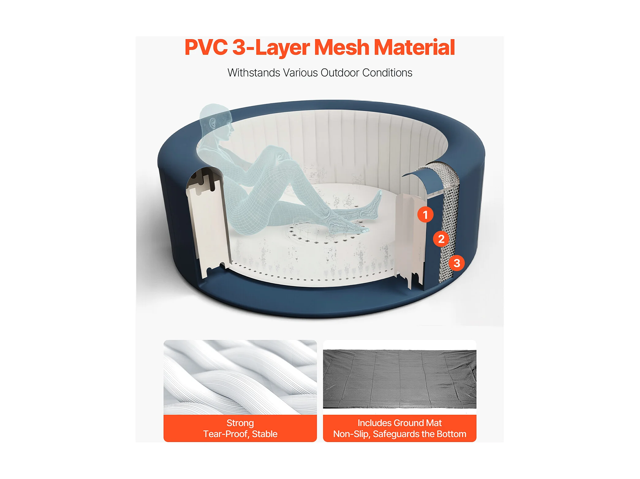 Nadmuchiwane Spa SucceBuy, z Hydromasażem, Przenośne, do Użytku na Zewnątrz, 208 x 66 cm, Kolor Szary
