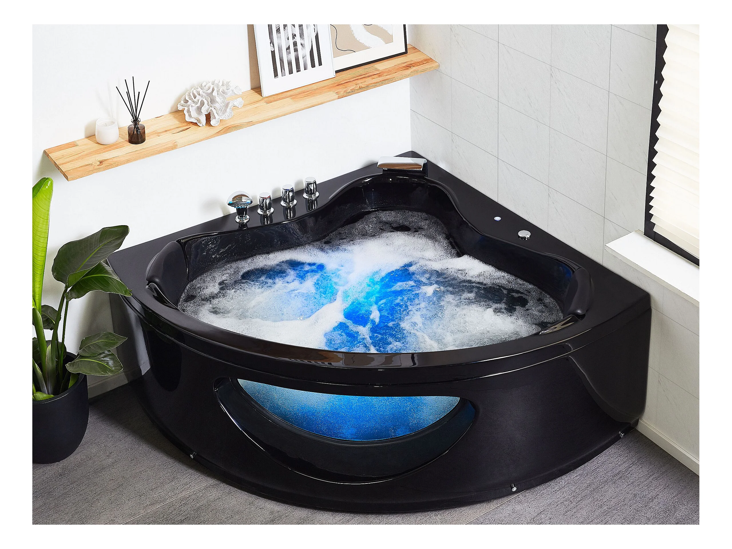 Wanna narożna z hydromasażem LED MARTINICA 214 x 155 cm Czarny