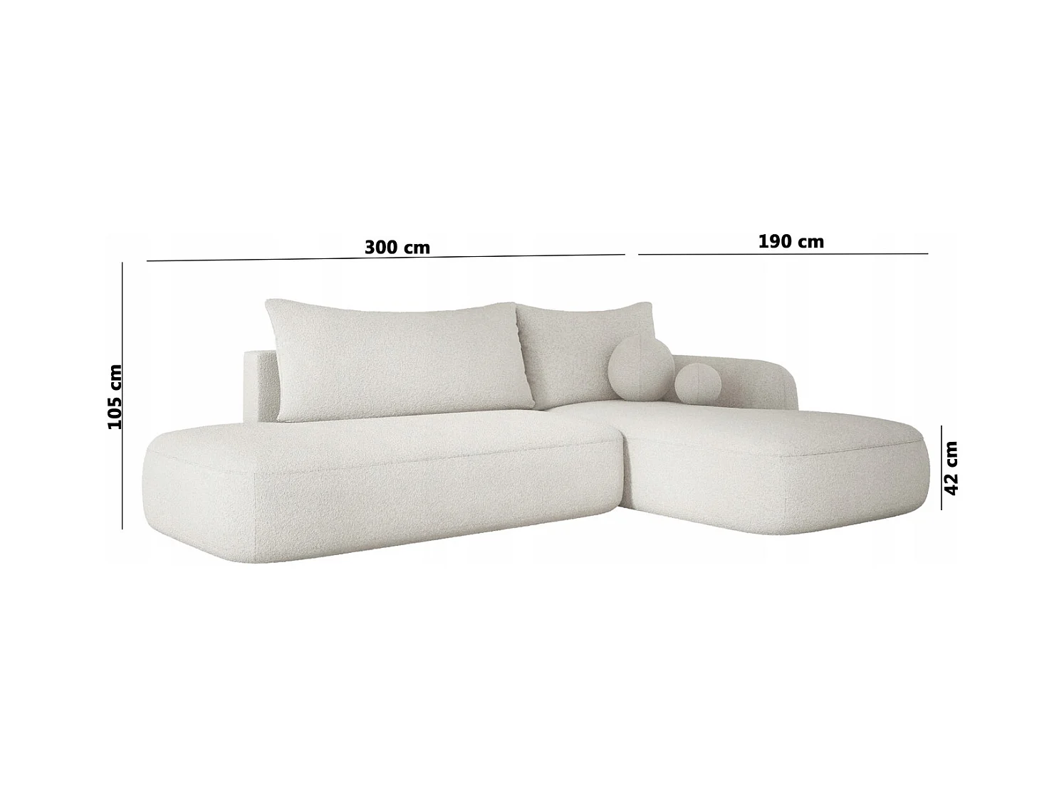 Narożnik BABU z funkcją spania – nowoczesna sofa do salonu, materiał CLOUD, 300x105x60 cm, prawa strona, Jasny Szary