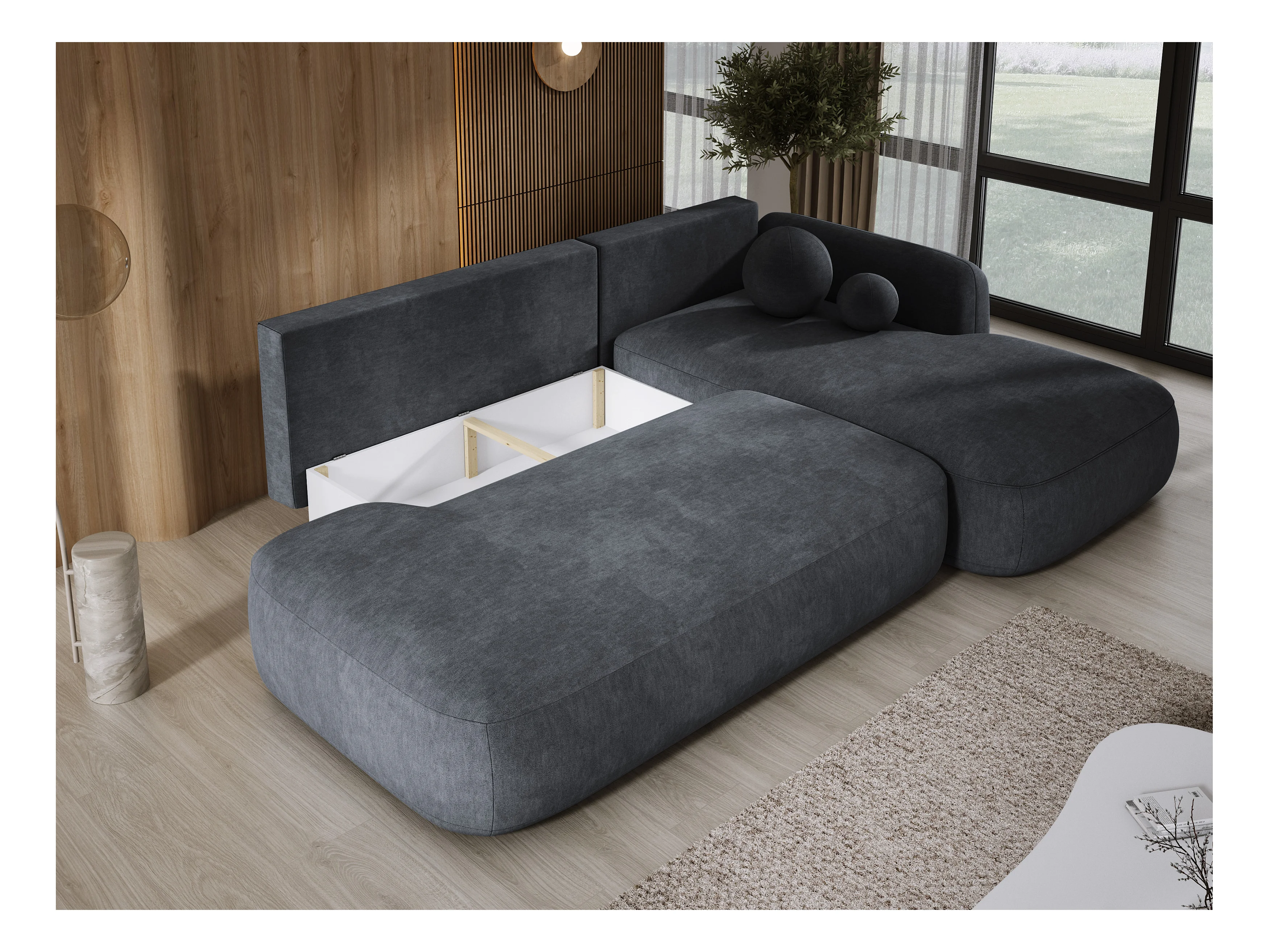 Narożnik Tapicerowany BOULI 4-os. Raven z funkcją spania 130x210cm pojemnik na pościel 264x162x82cm prawo stronny kolor: szary
