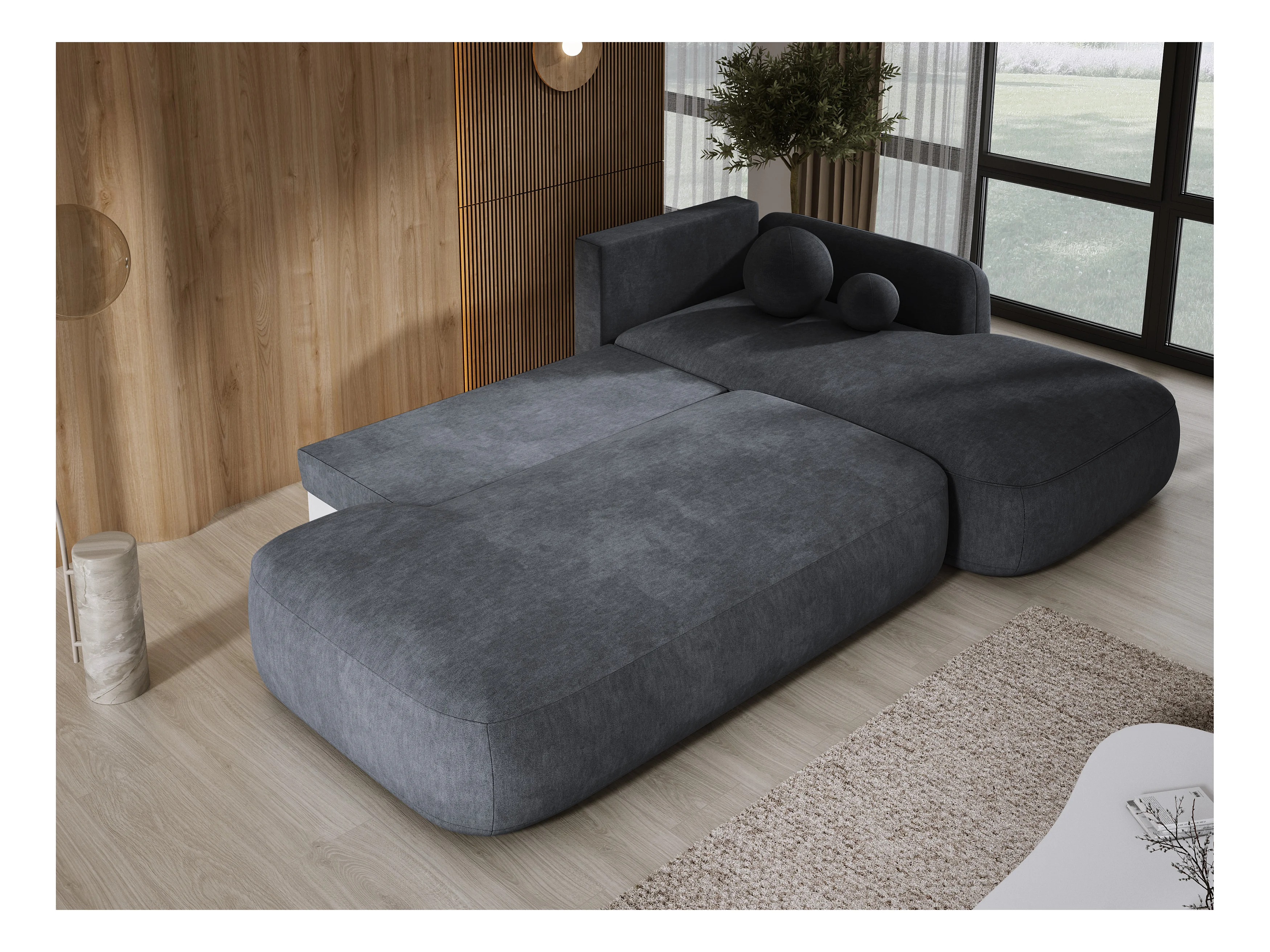 NAROŻNIK RAVEN L z funkcją spania, pojemnik na pościel, wolnostojący, tapicerowany z regulowanymi zagłówkami 257x198x96 cm Prawa strona Szary