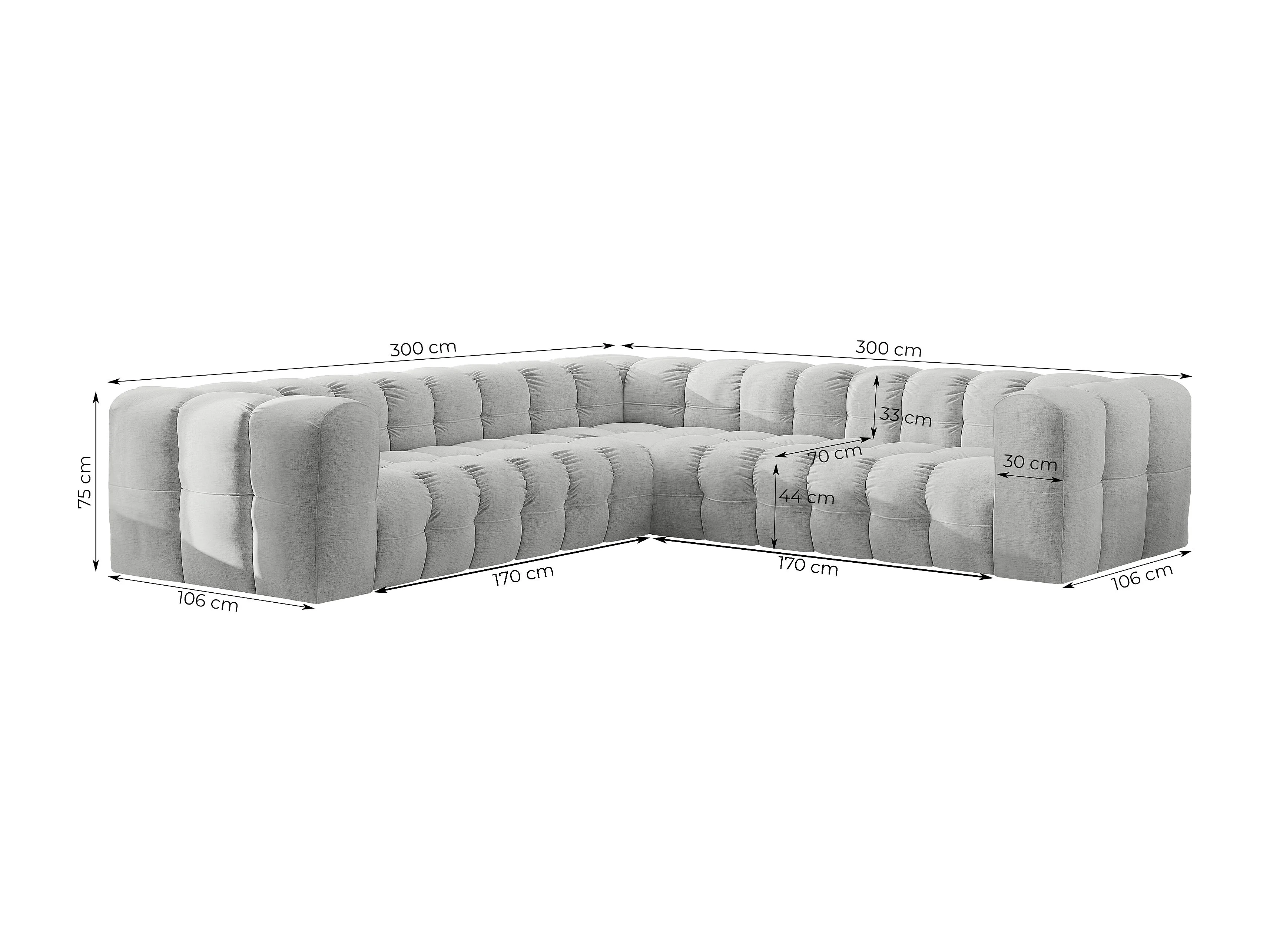Narożnik Baloo Corner Średni, 6-osobowy, do salonu, tkanina Moly, krem