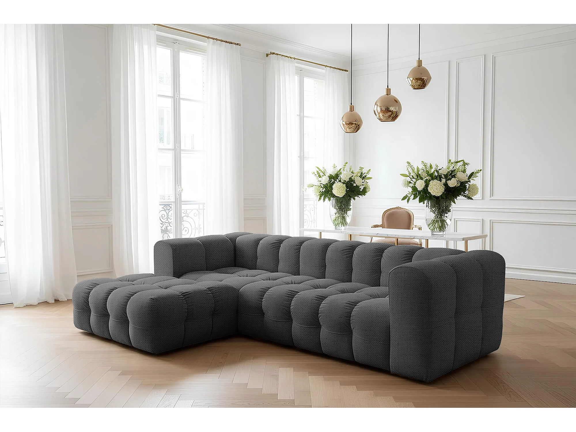 Narożnik Baloo L, do salonu, tkanina Moly, lewy, antracyt