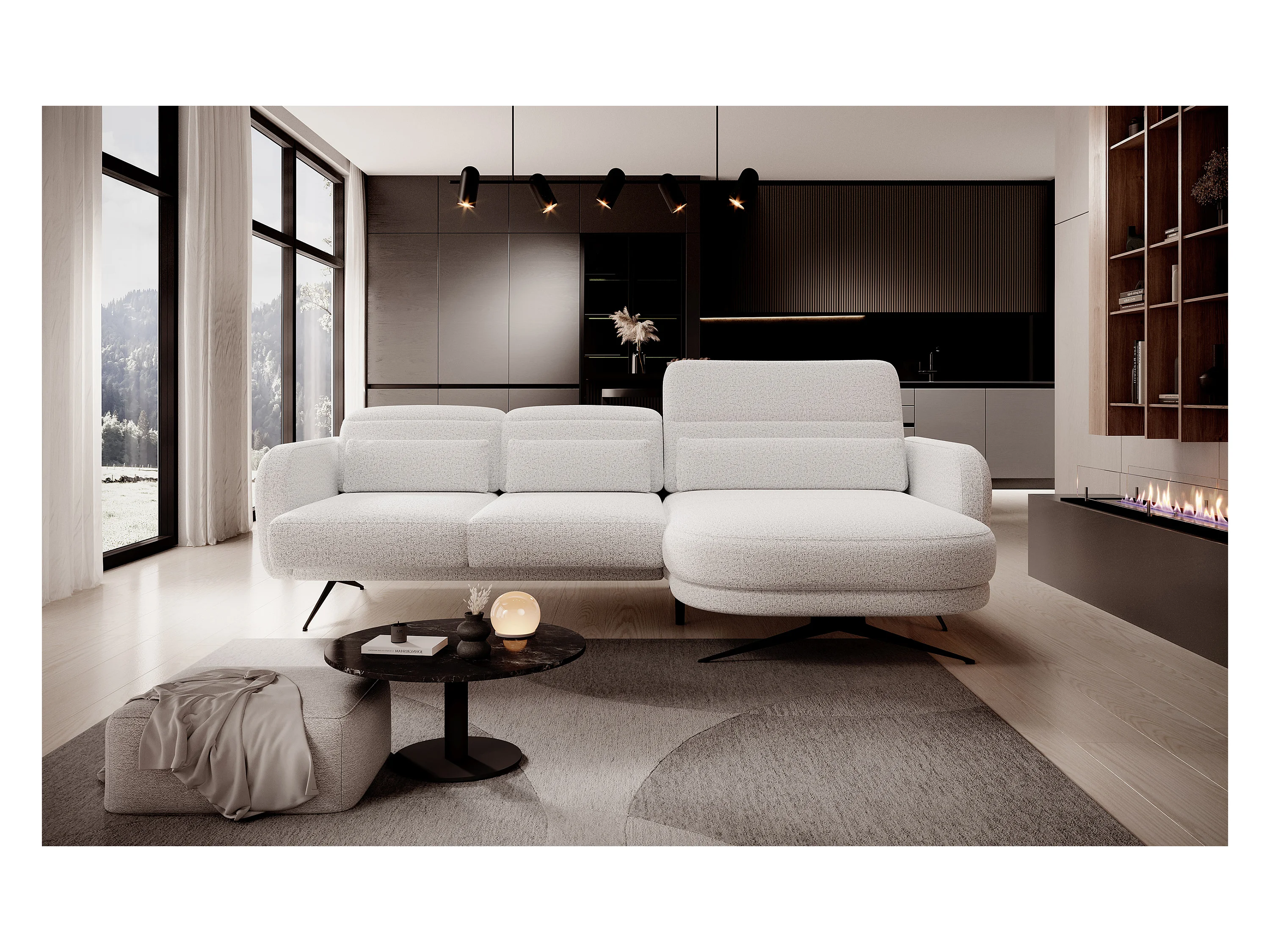 Narożna sofa PLAZA XL – elektryczna, 385x216 cm, kolor Jasnoczarny Solar, układ prawy