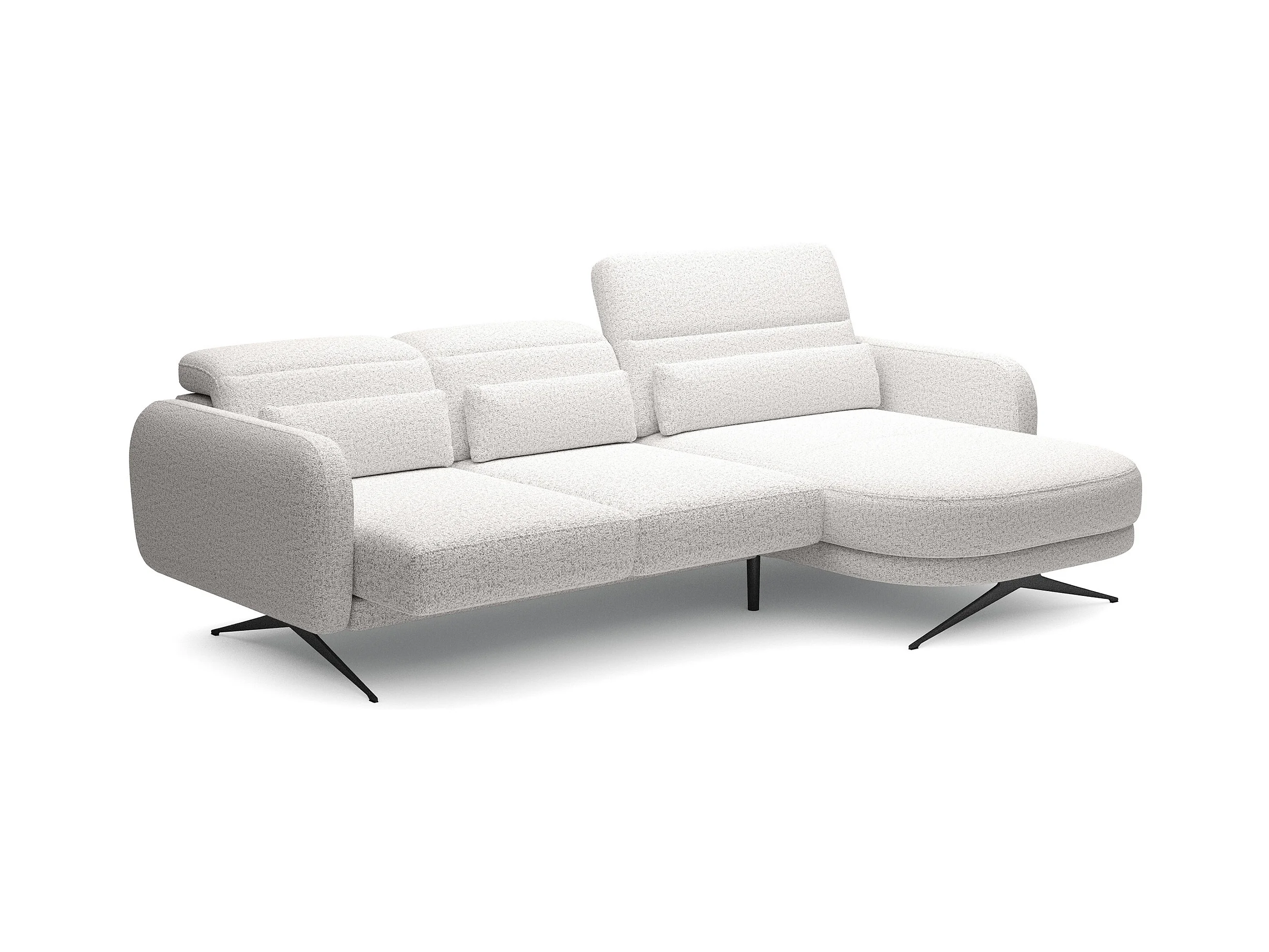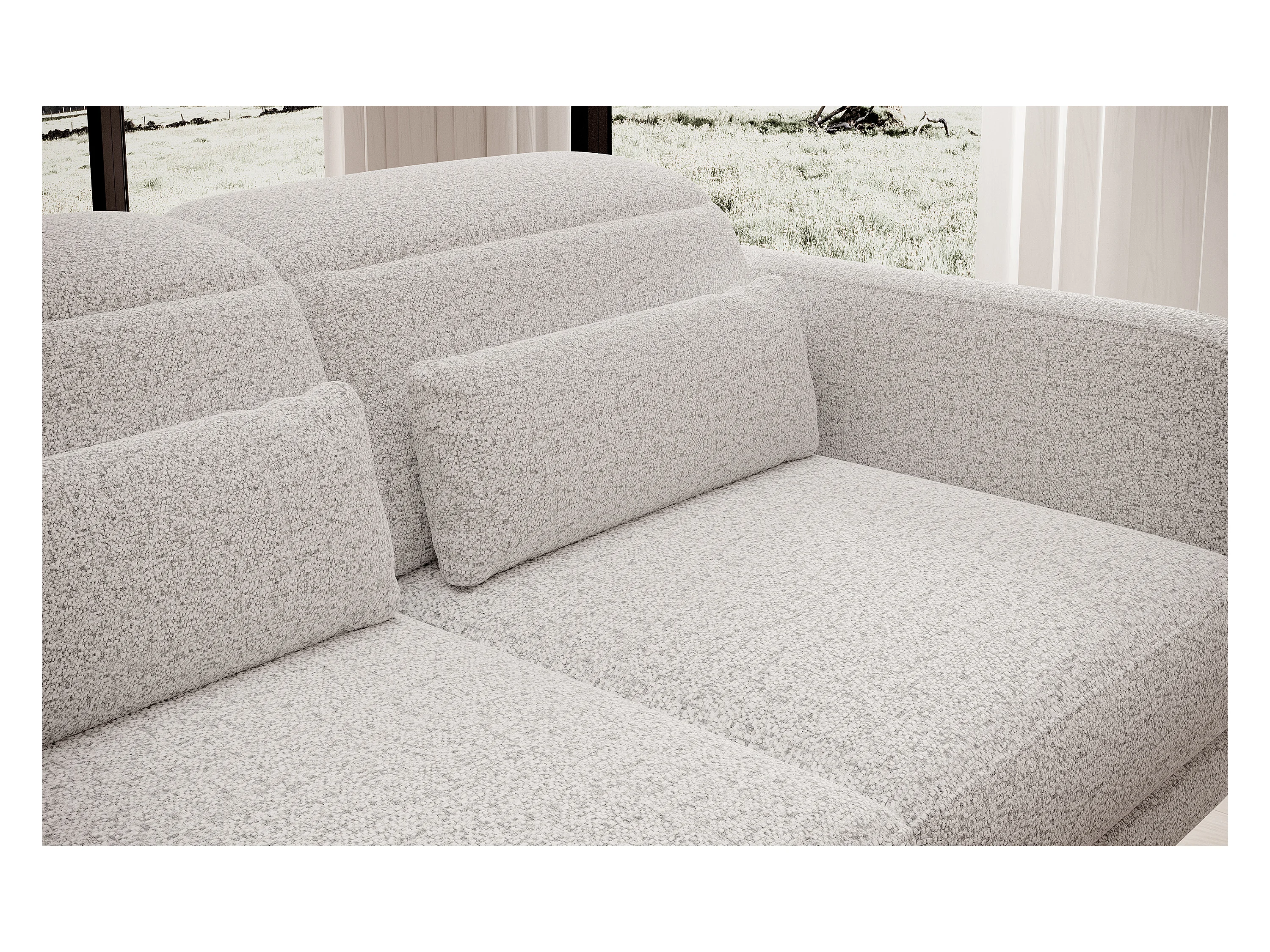 NAROŻNIK BARILLO-Regulowane oparcie, Stalowe nóżki, Eleganckie podłokietniki, 3 poduszki oparciowe, Wolnostojący, 261x170x97 cm Prawa strona Popielaty