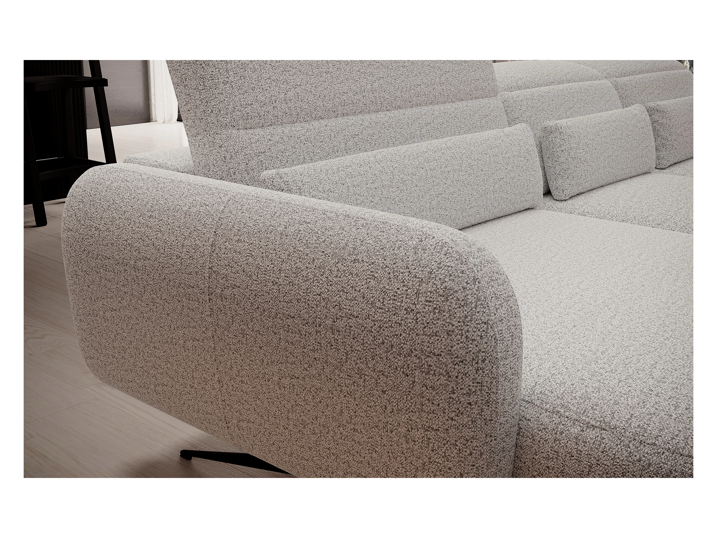 Narożnik MOLLY półokrągły, Abriamo Bouclé, luźne poduszki, tapicerka Bouclé, 210x157x88 cm, prawy szary jedwab