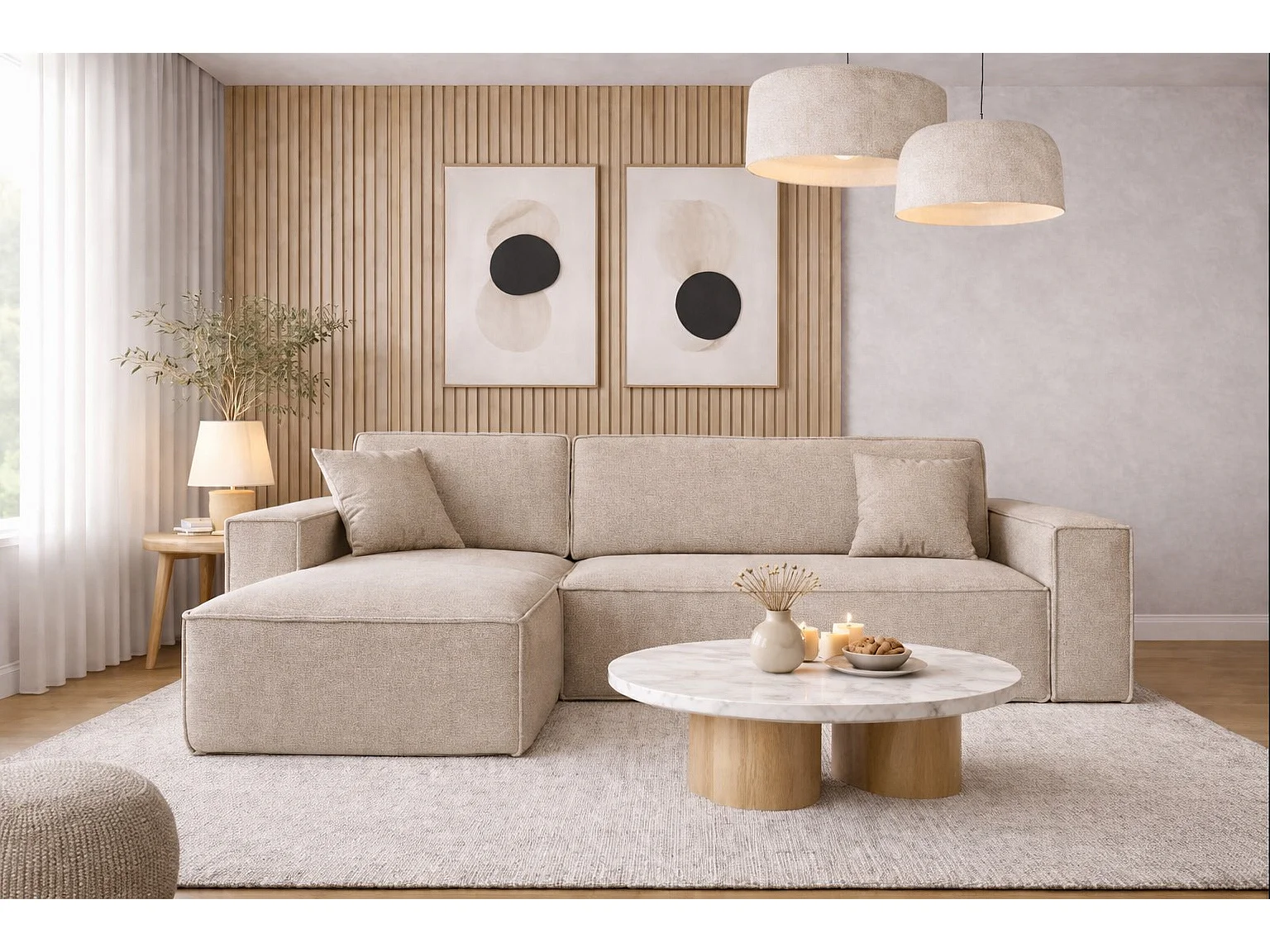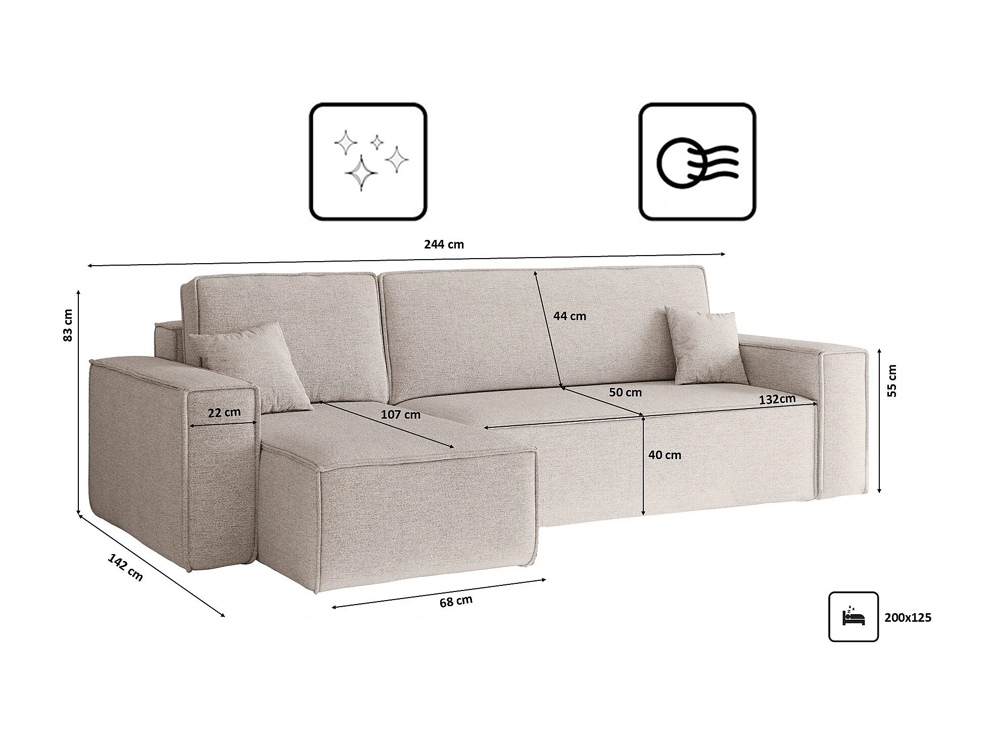 Narożnik BEST L z funkcją spania i pojemnikiem, tkanina Neve, Beżowy, Lewy