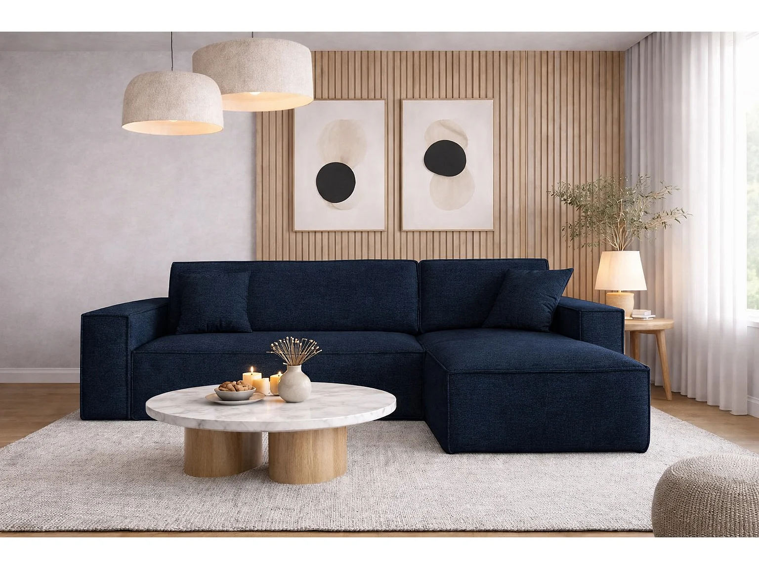 Narożnik BEST L z funkcją spania i pojemnikiem, tkanina Neve, Ciemnoniebieski, Prawy