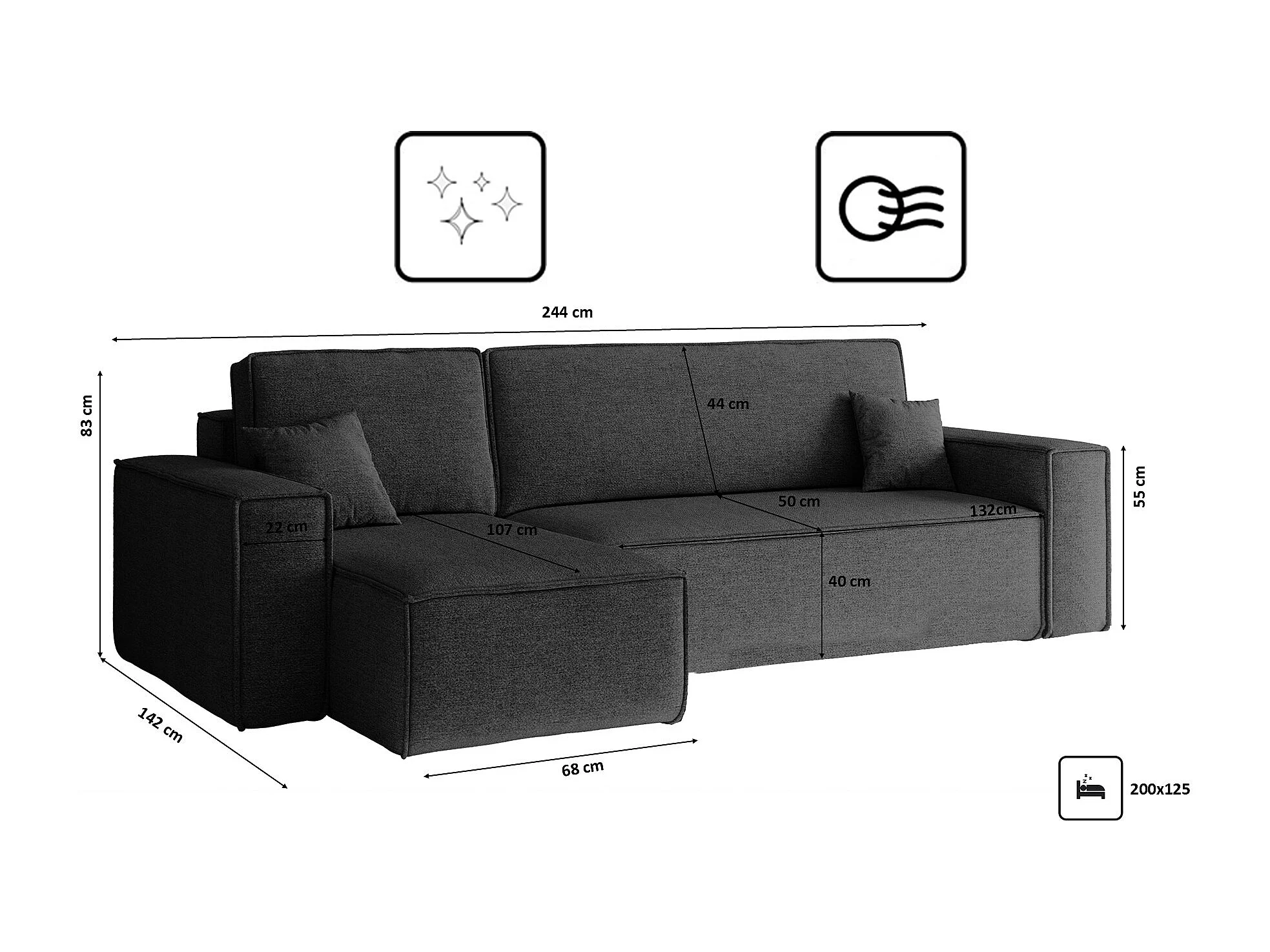 Narożnik BEST L z funkcją spania i pojemnikiem, tkanina Neve, Ciemnoszary, Lewy