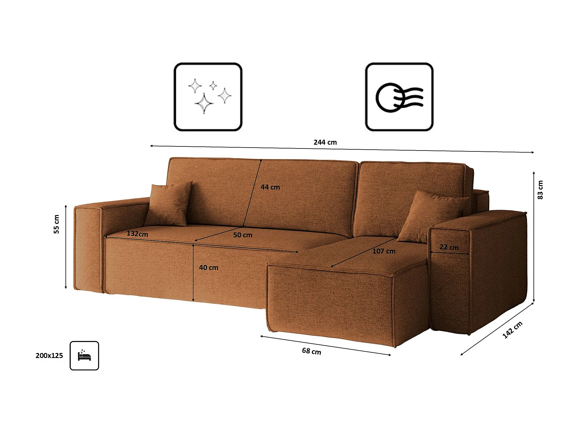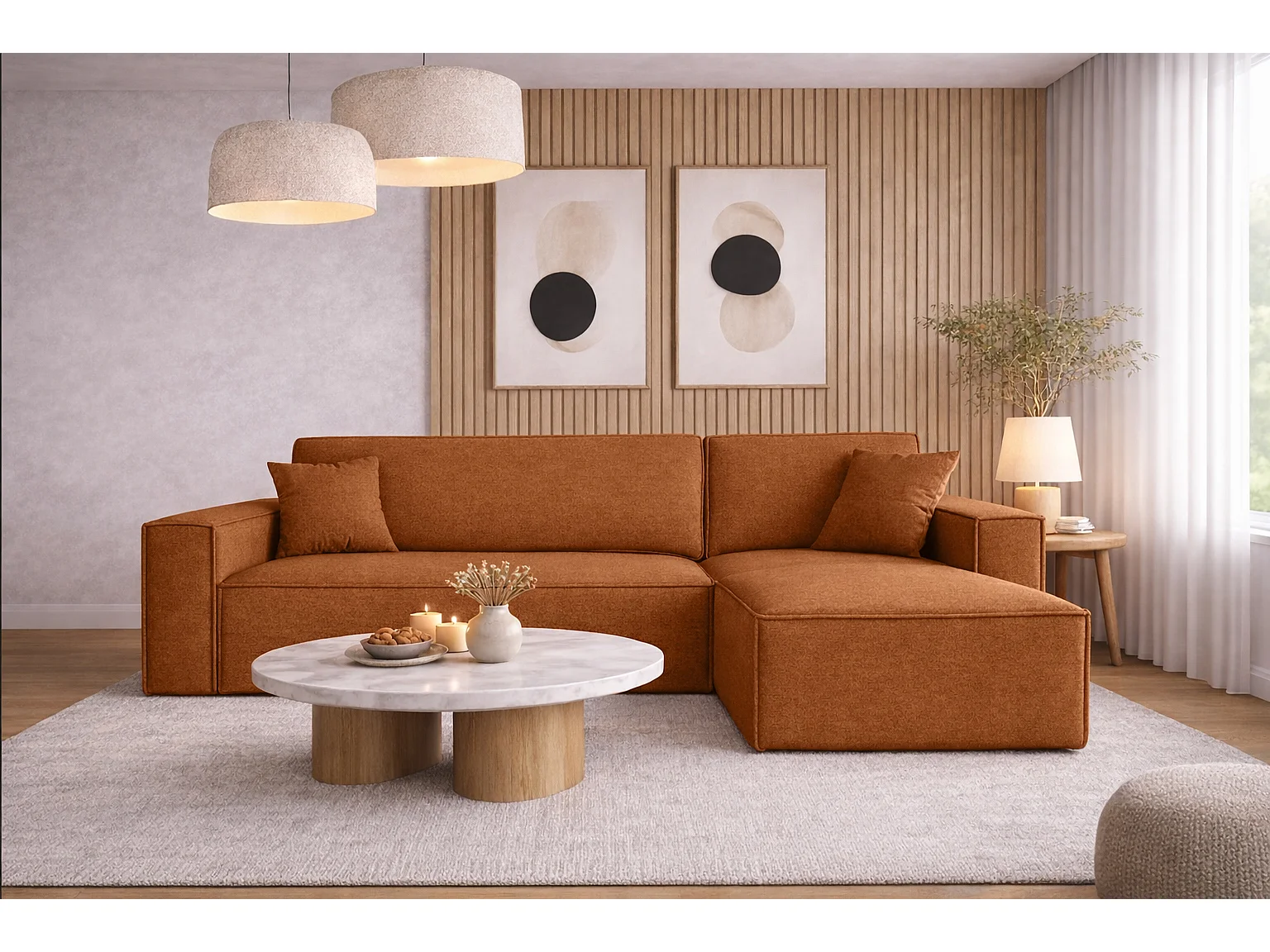 Narożnik BEST L z funkcją spania i pojemnikiem, tkanina Neve, Miedziany, Prawy