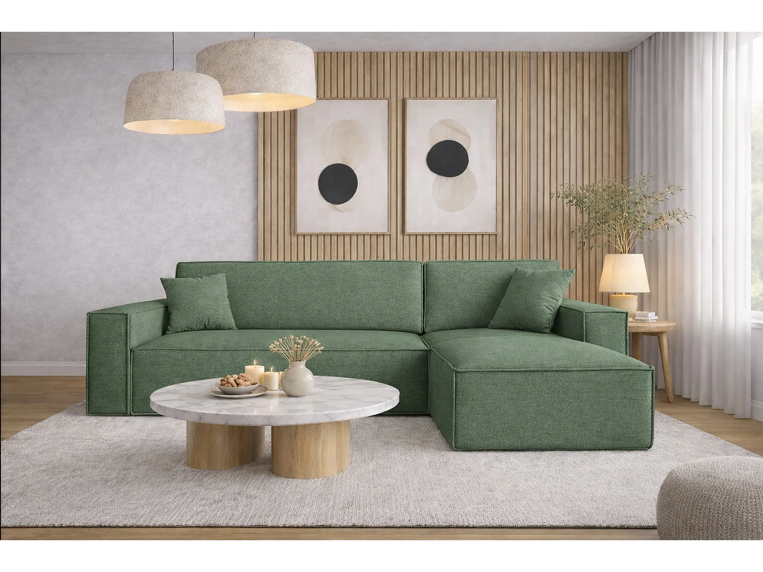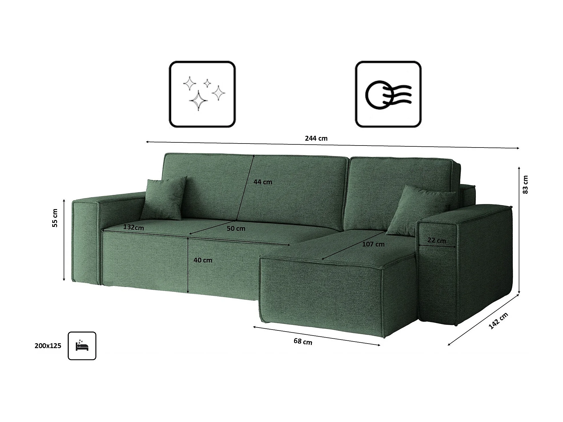 Narożnik BEST L z funkcją spania i pojemnikiem, tkanina Neve, Zielony, Prawy