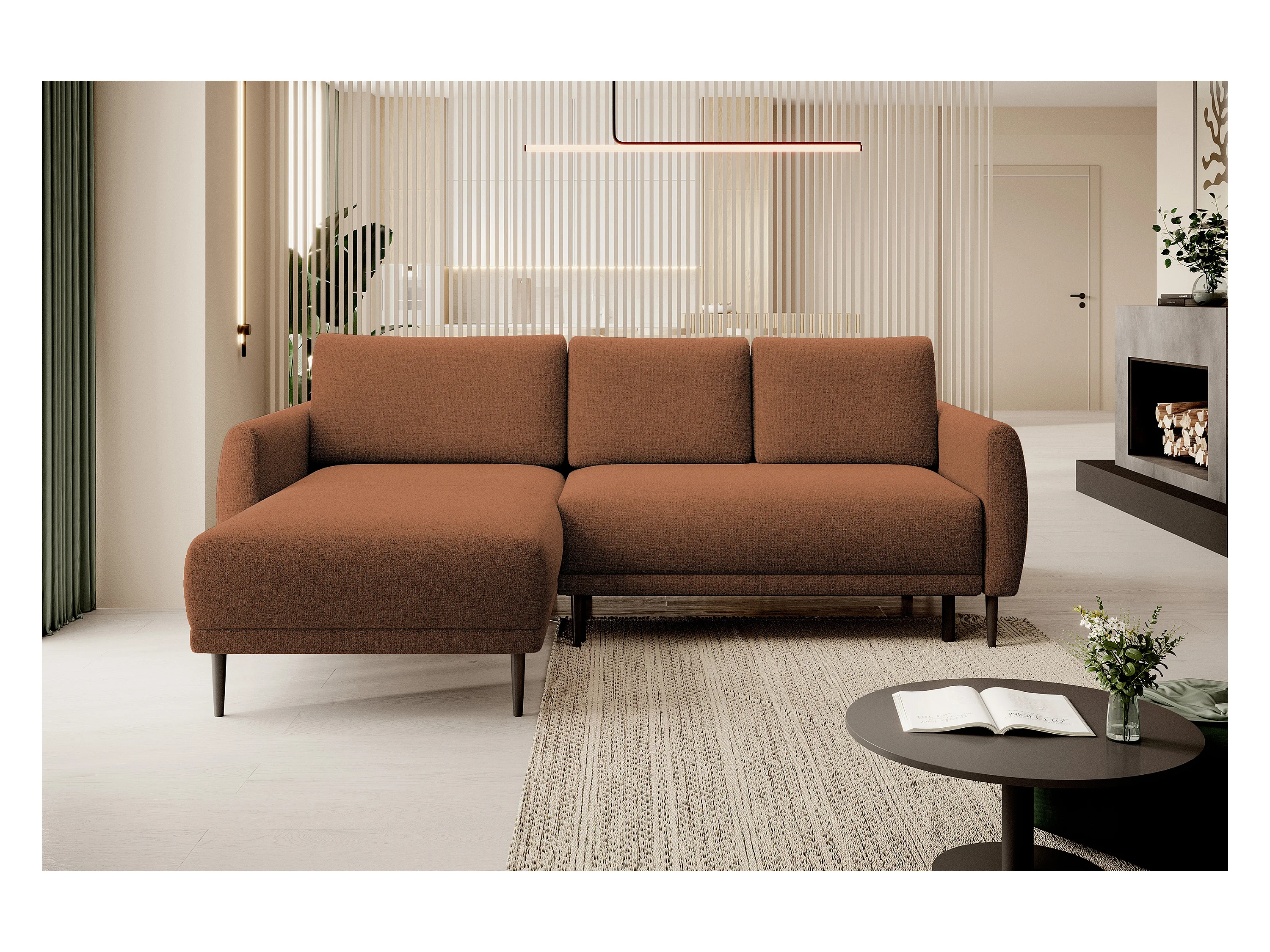 NAROŻNIK BONO Stylowa sofa z funkcją spania, Drewniane nóżki, Eleganckie podłokietniki, Głębokie siedzisko 226x164x88cm, Lewa strona brązowa