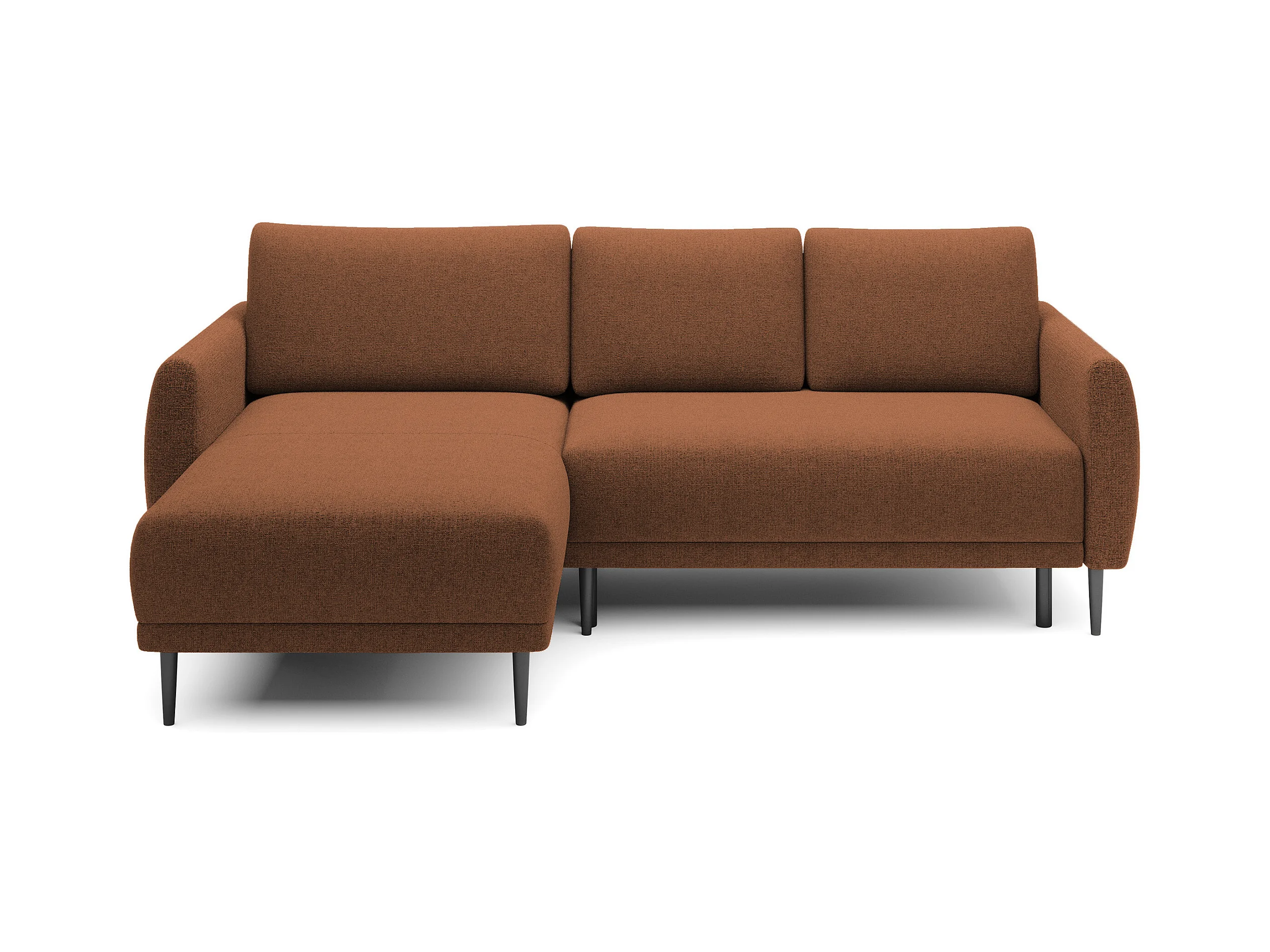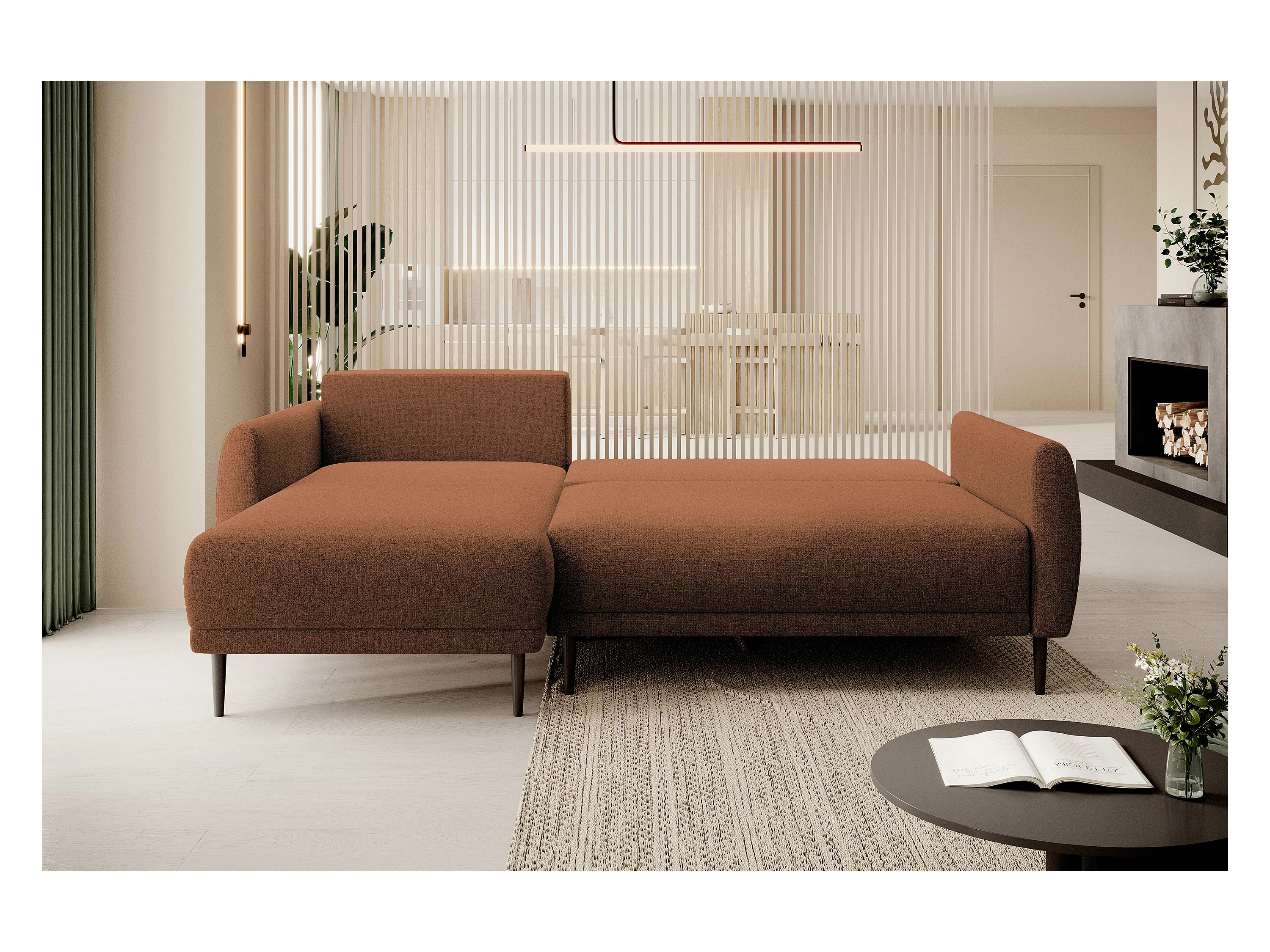 NAROŻNIK RAVEN L z funkcją spania, pojemnik na pościel, wolnostojący, tapicerowany z regulowanymi zagłówkami 257x198x96 cm Lewa strona Brązowy
