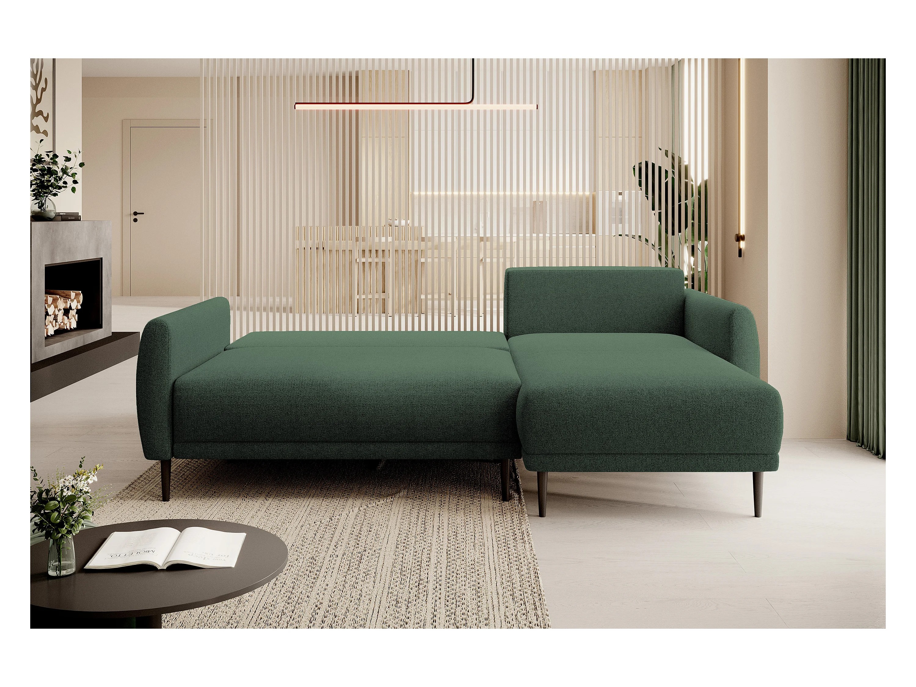 NAROŻNIK BONO Stylowa sofa z funkcją spania, Drewniane nóżki, Eleganckie podłokietniki, Głębokie siedzisko 226x164x88cm, Prawa strona Leśna zieleń