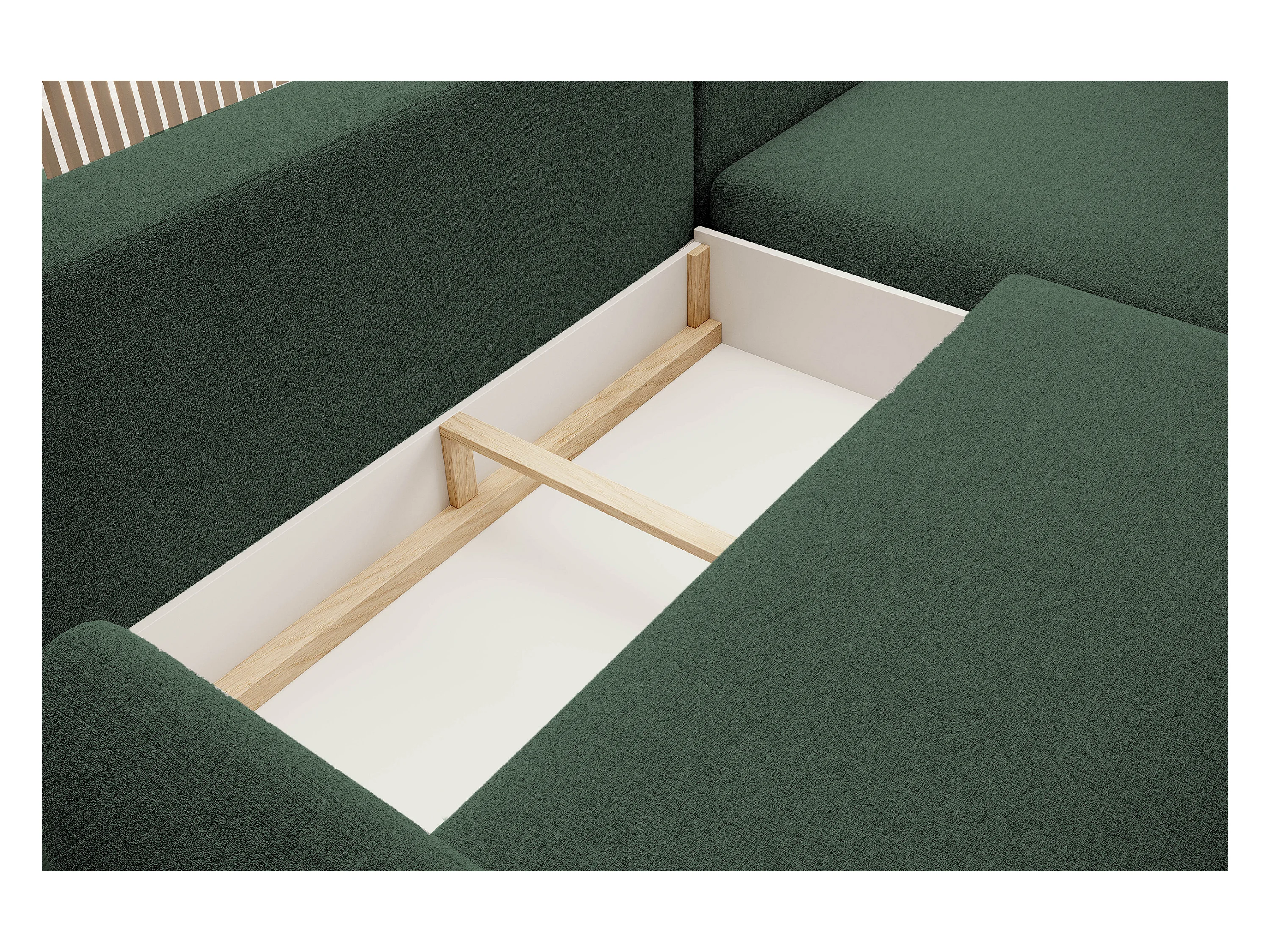 Narożnik Tapicerowany BOULI 4-os. Raven z funkcją spania 130x210cm pojemnik na pościel 264x162x82cm prawo stronny kolor: morska zieleń