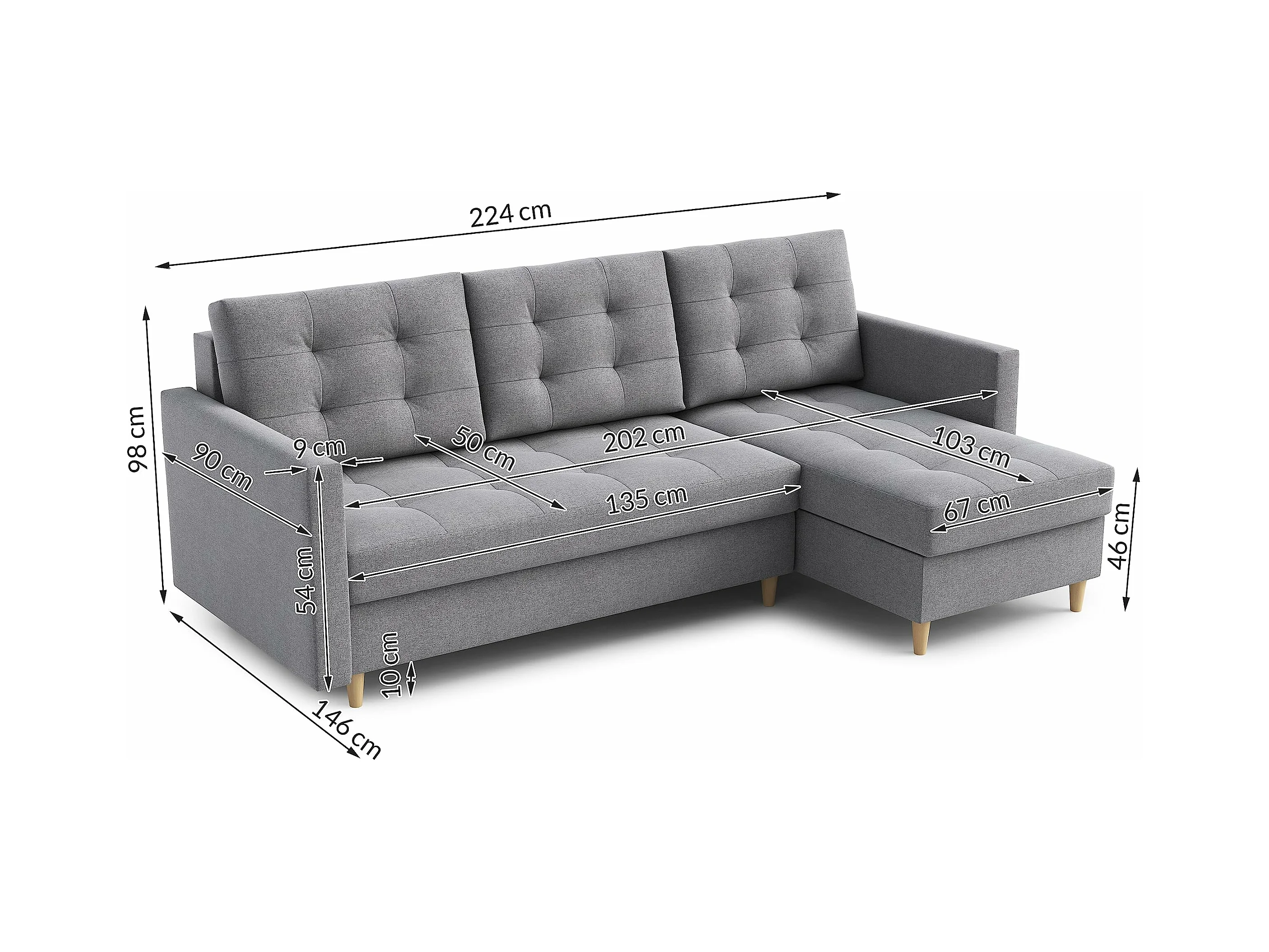 Narożnik DIVO z funkcją spania, 224x103 cm, elegancki design, wysokiej jakości materiały, kolor ciemnoszary, lewy